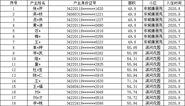 【保障性住房分配】宿州市城区2020年第三季度公租房分配名单