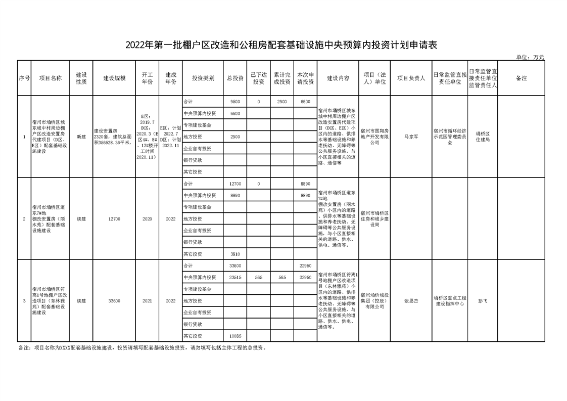 2022年第一批棚户区改造和公租房配套基础设施中央预算内投资计划申请表