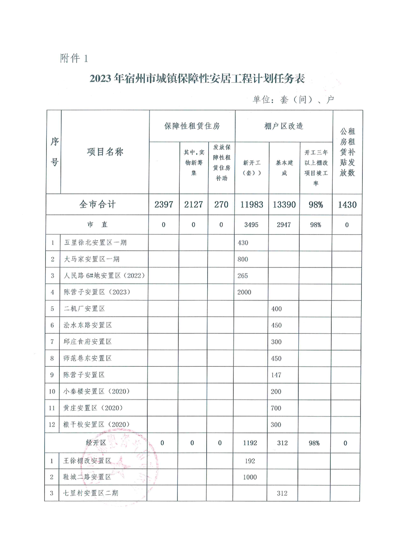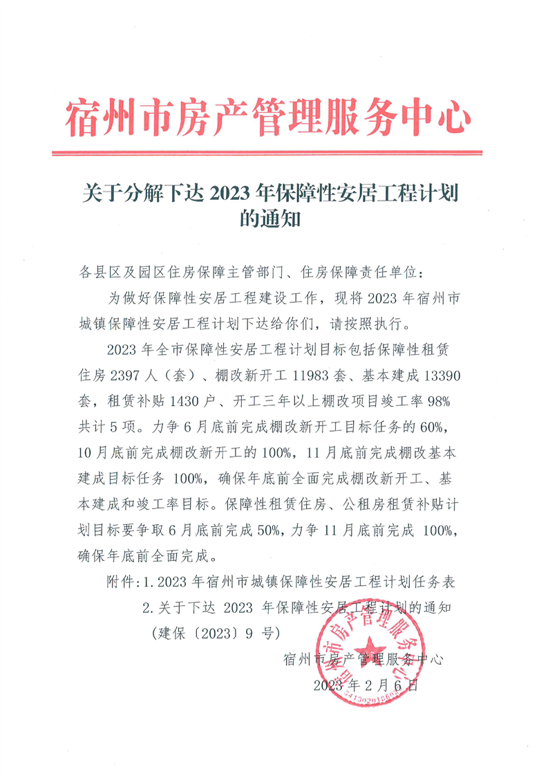 关于分解下达2023年保障性安居工程计划的通知