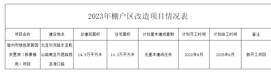 关于2023年度宿州市埇桥区棚户区改造竣工项目的情况
