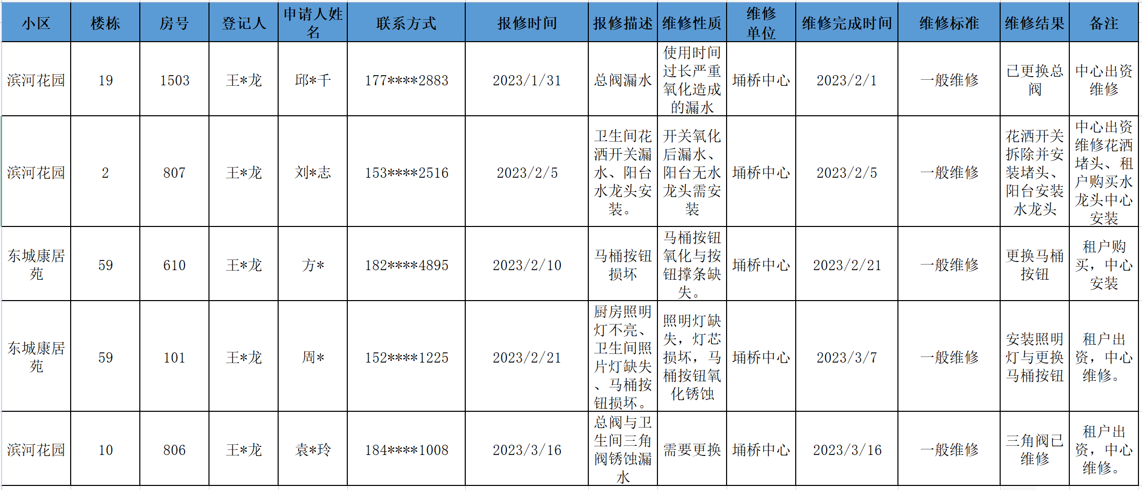 【房屋维修信息】2023年第一季度关于房屋维修信息的情况