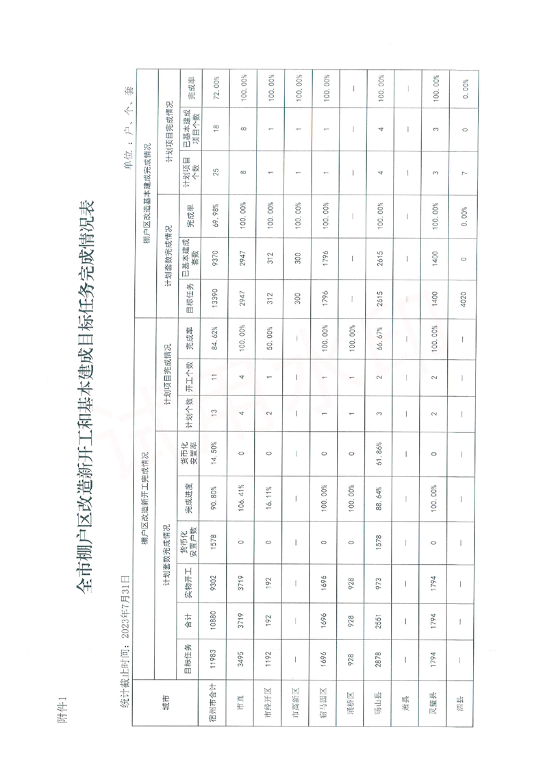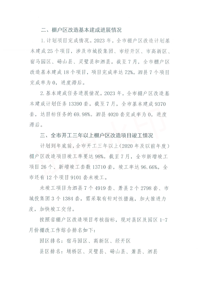 【棚户区改造】关于2023年1-7月全市城镇棚户区改造进展情况的通报