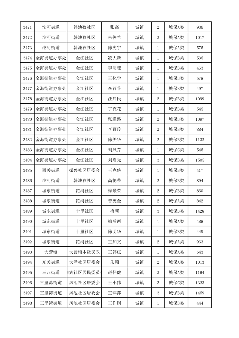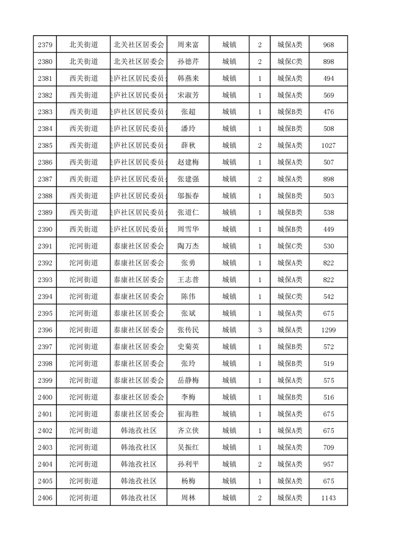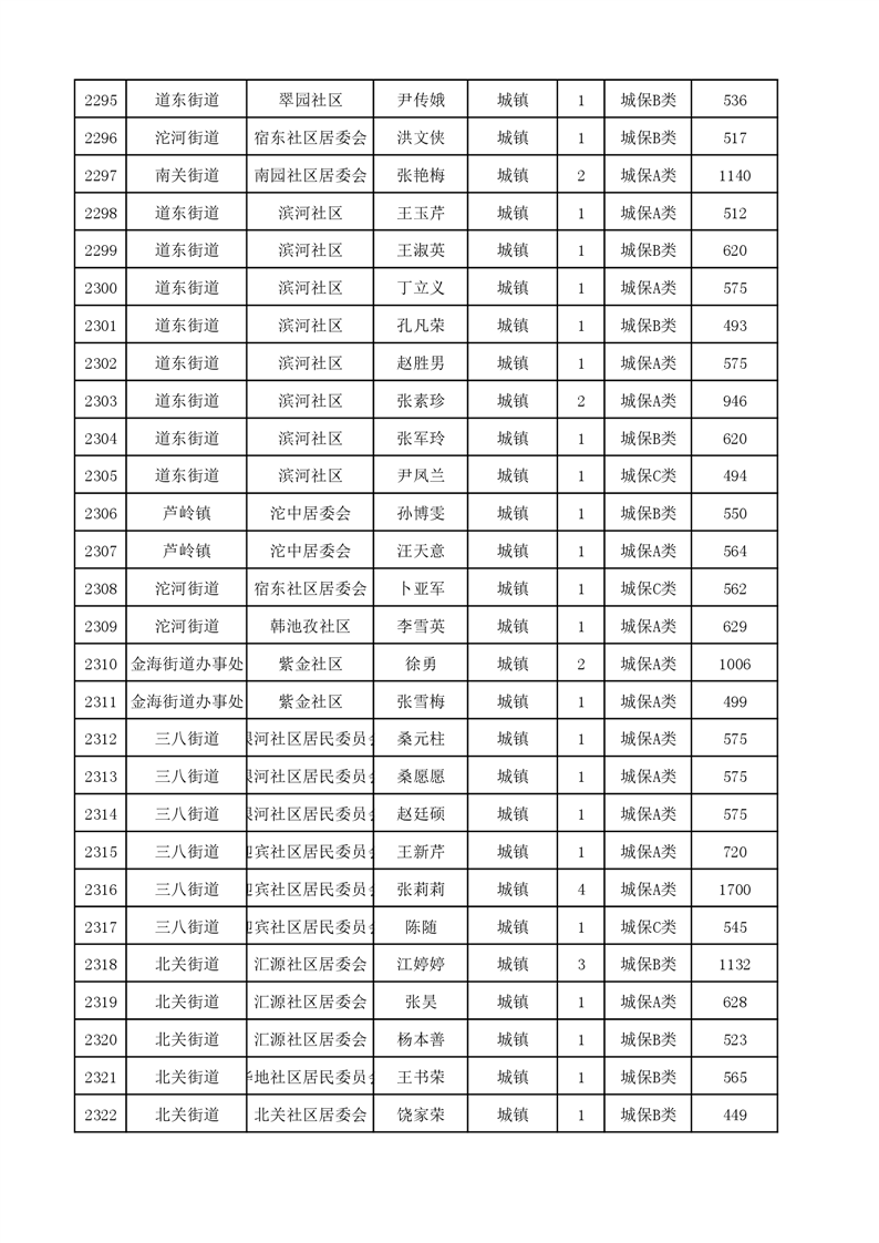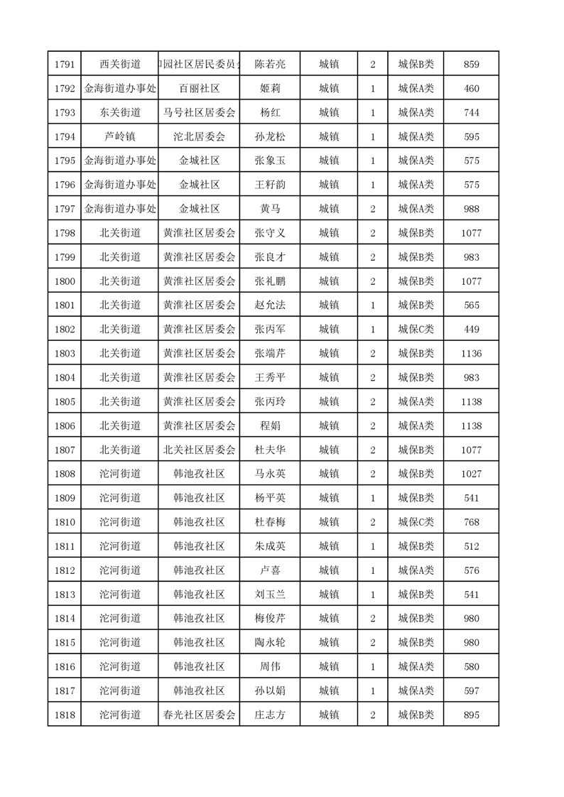 埇桥区2023年9月份城镇低保花名册