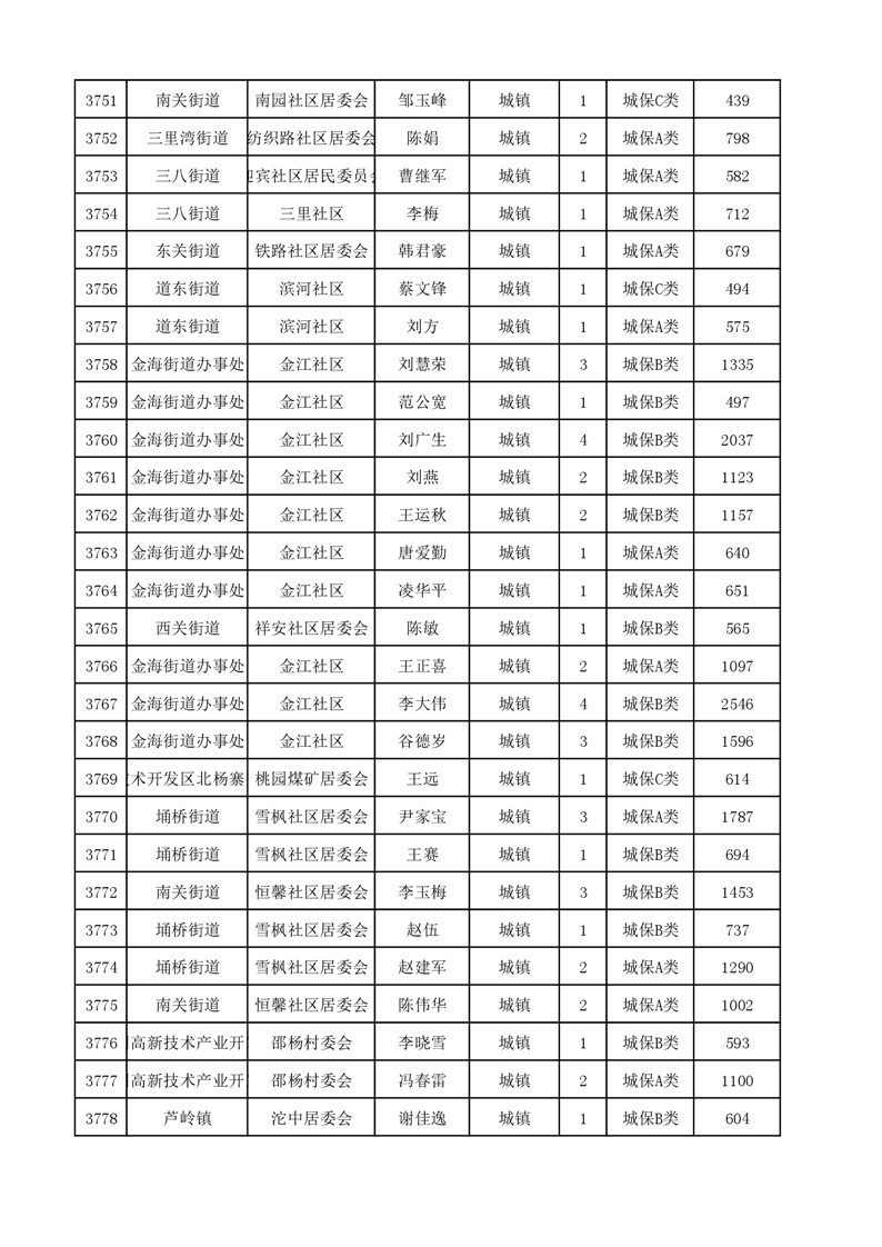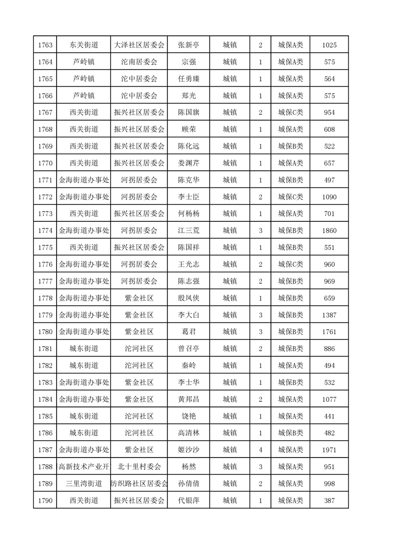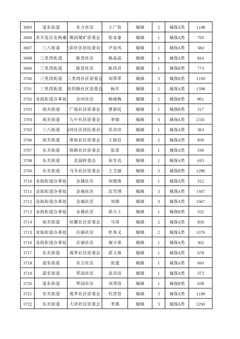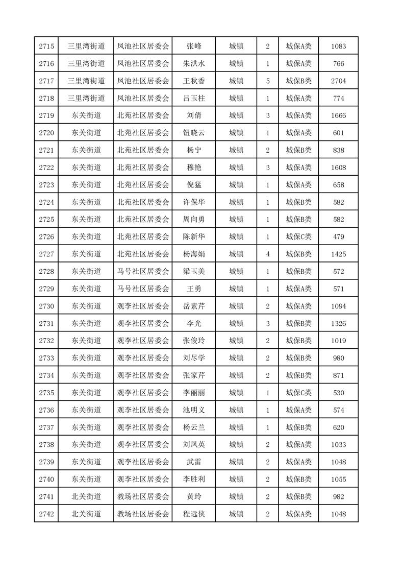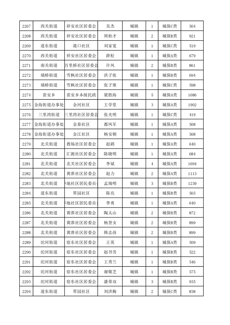 埇桥区2023年9月份城镇低保花名册
