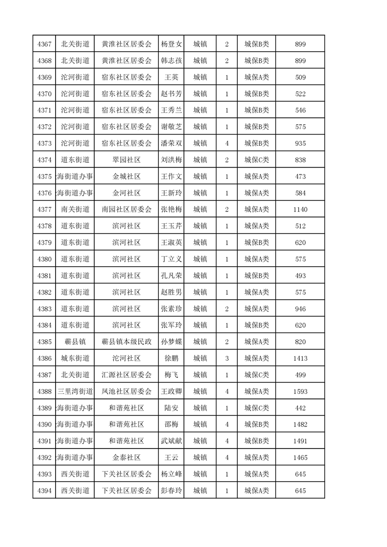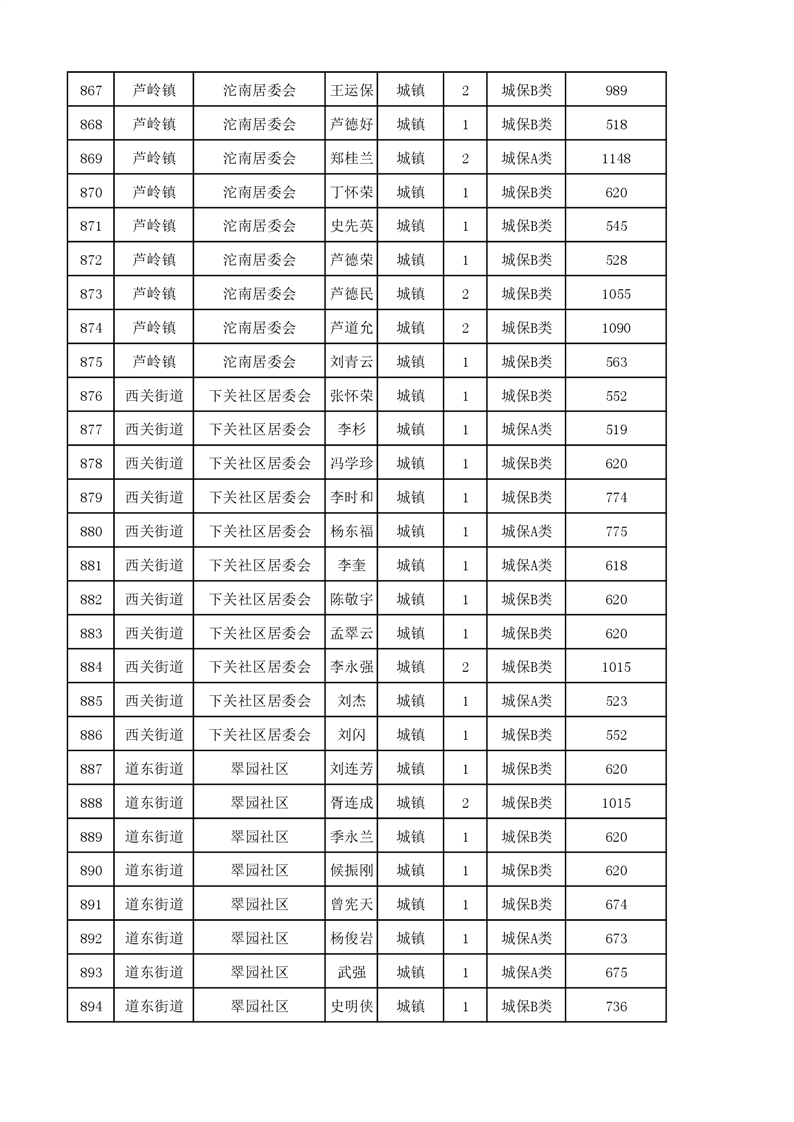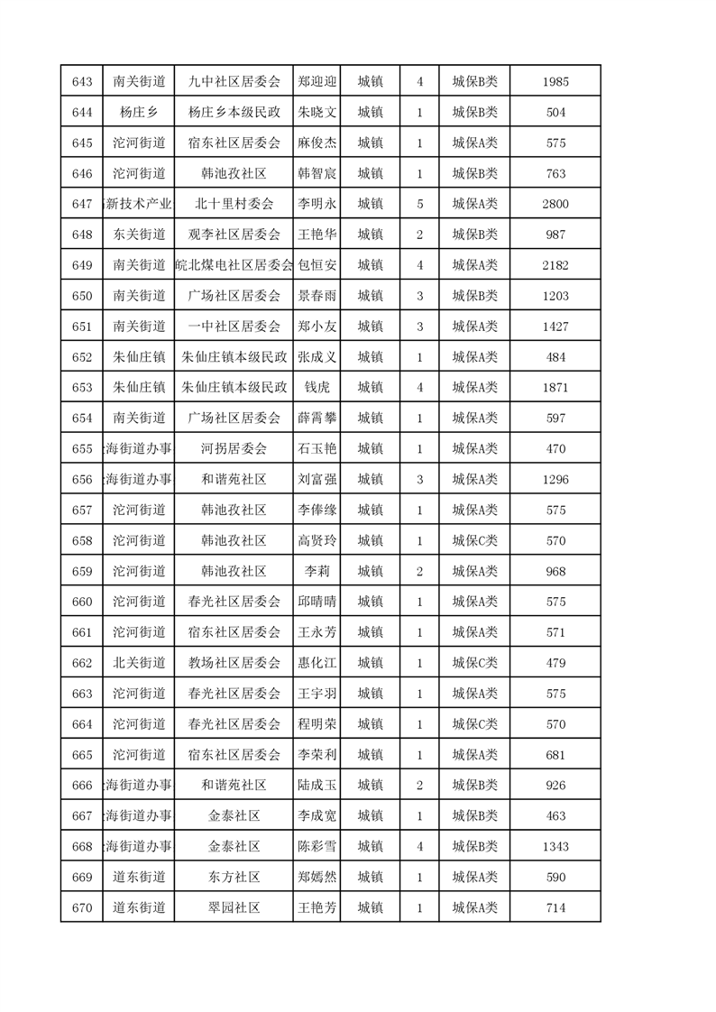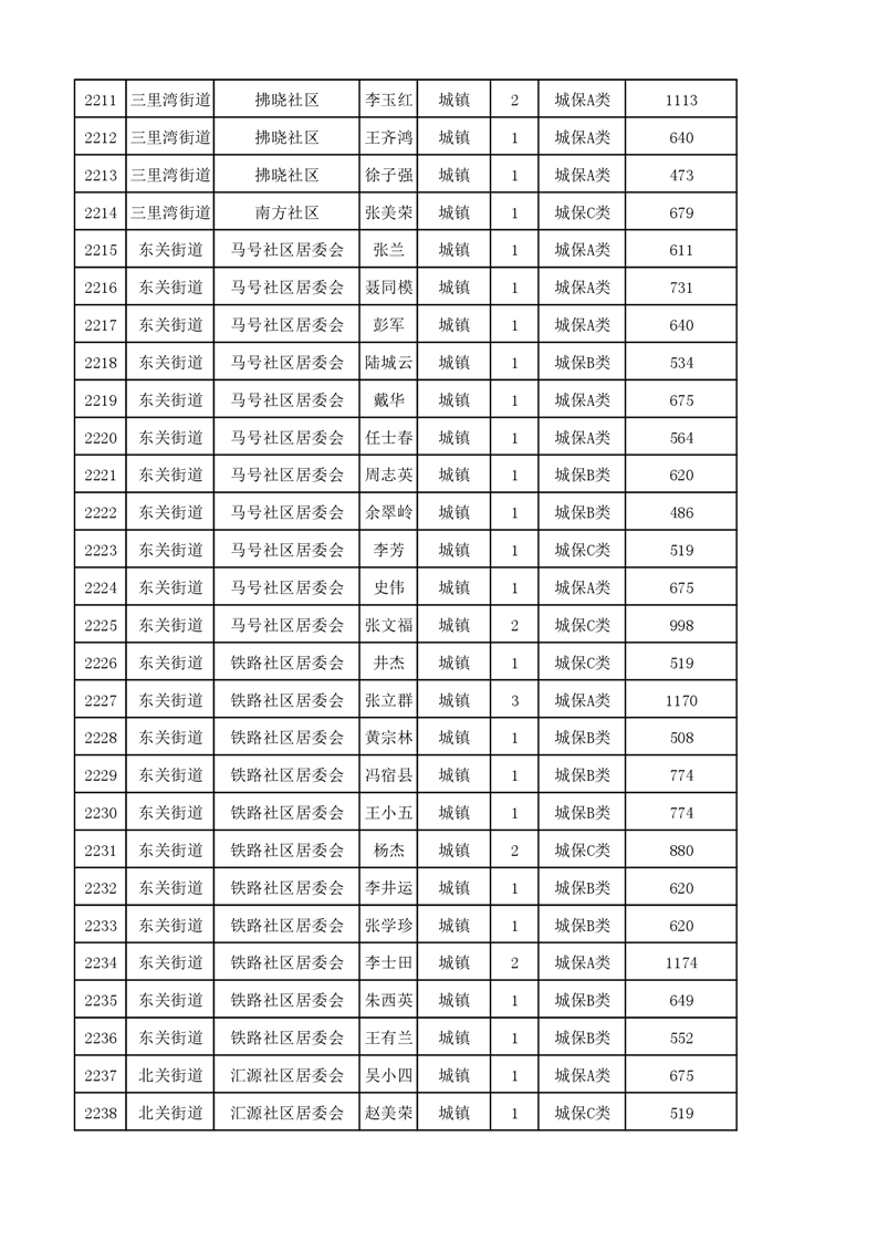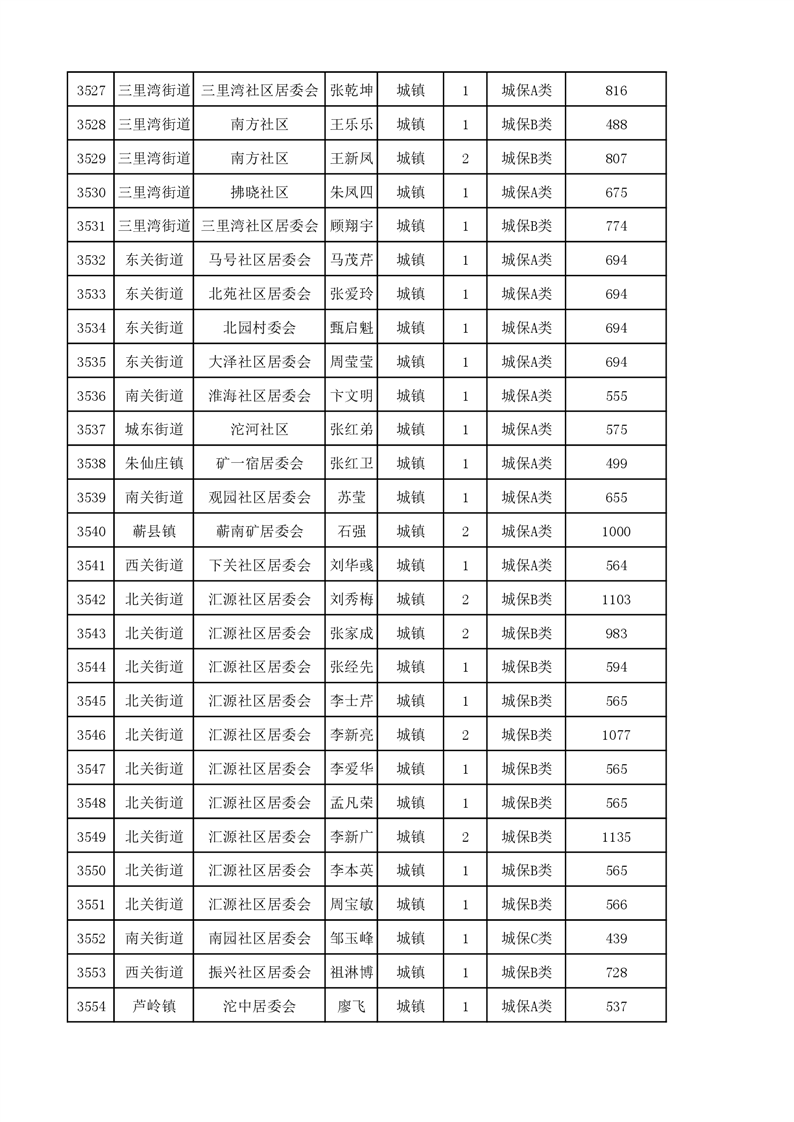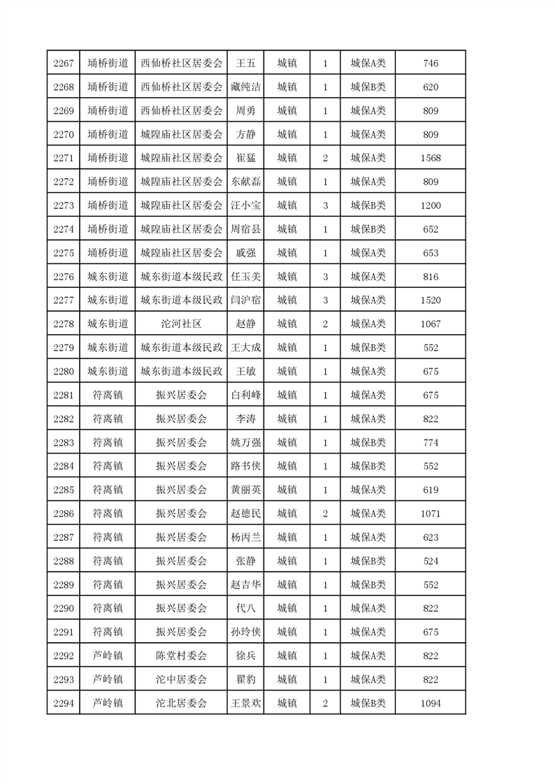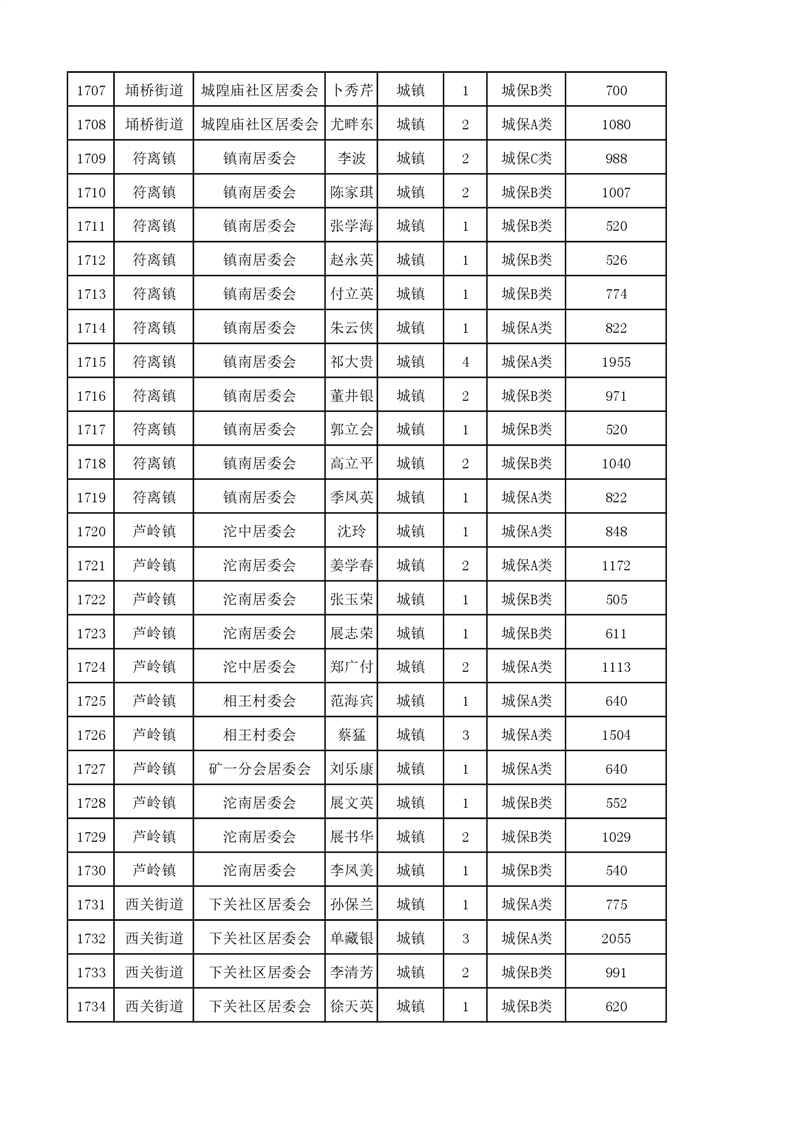 埇桥区2023年11月份城镇低保花名册