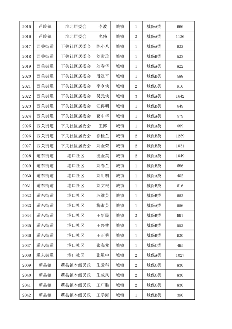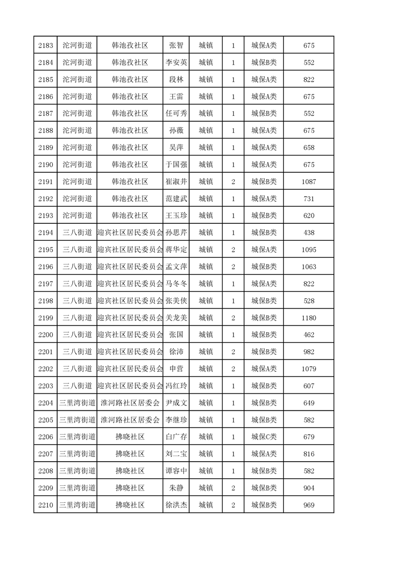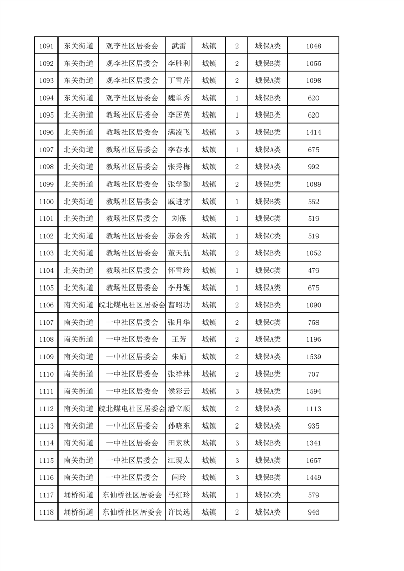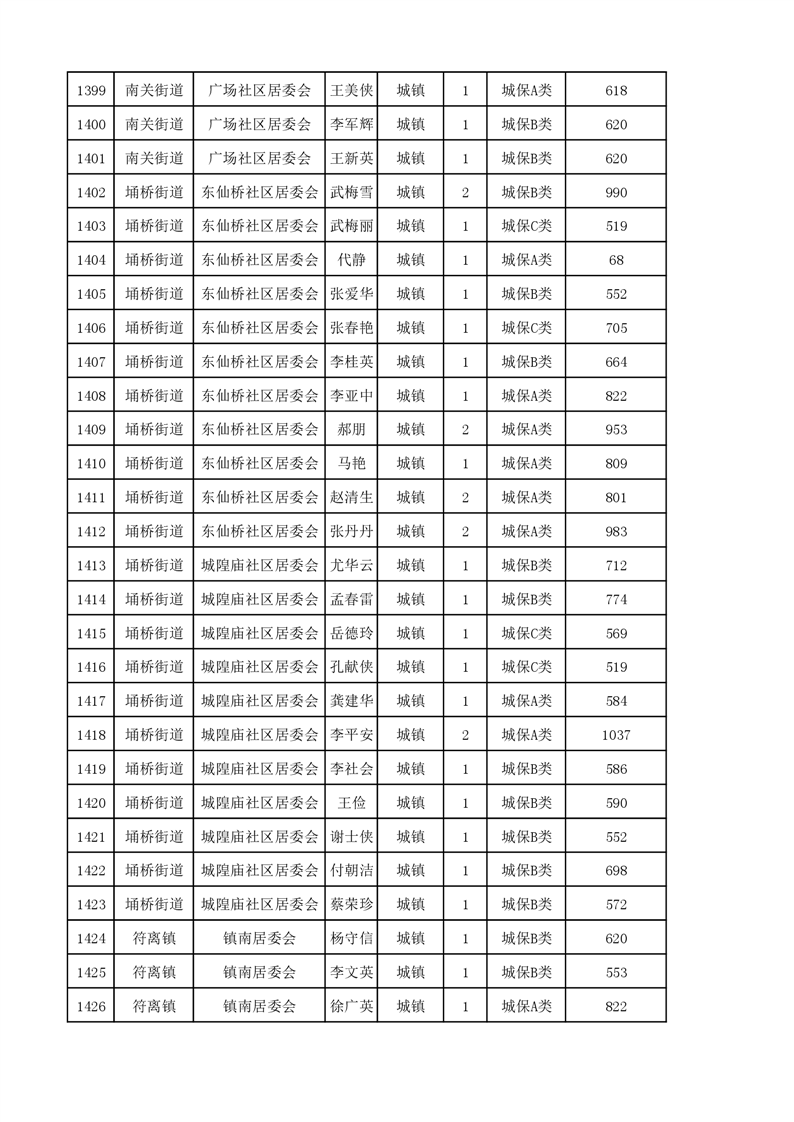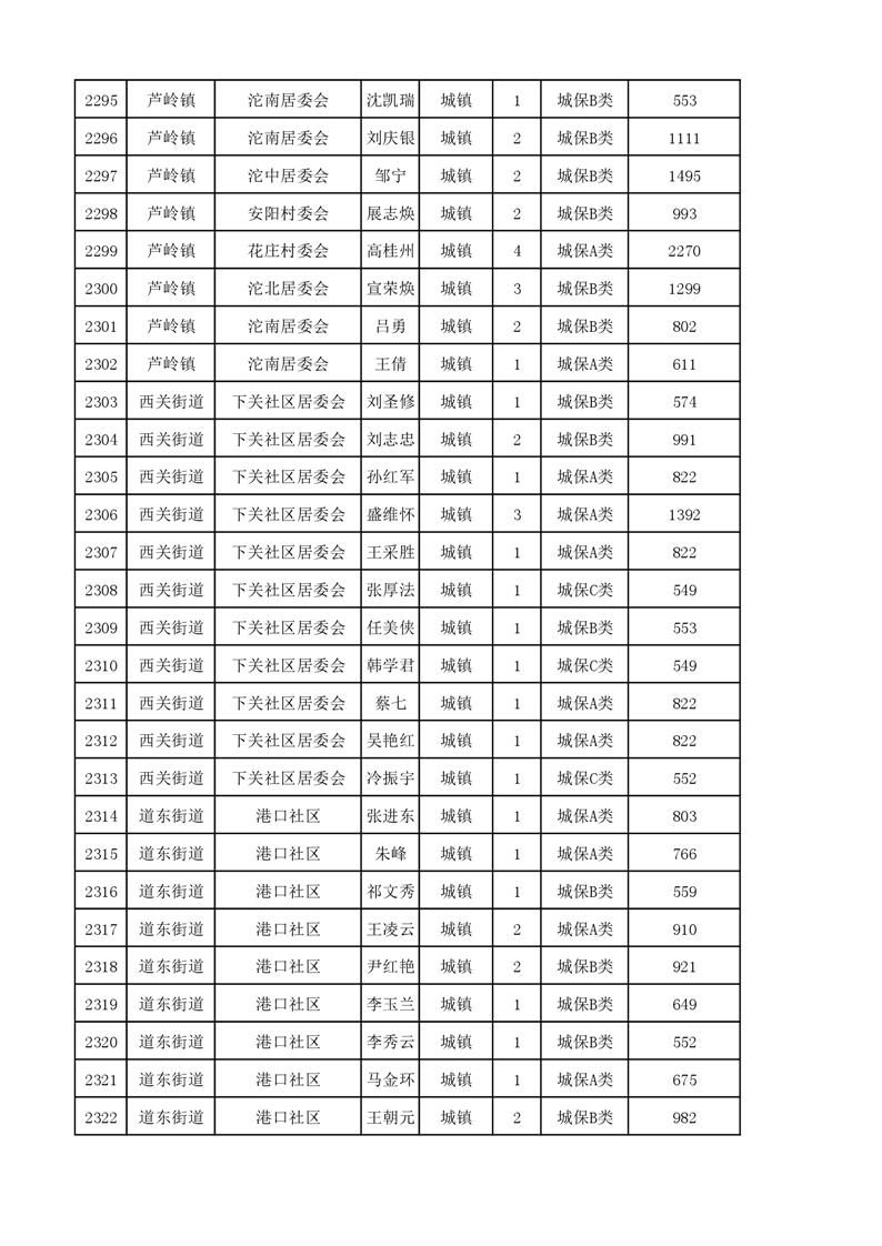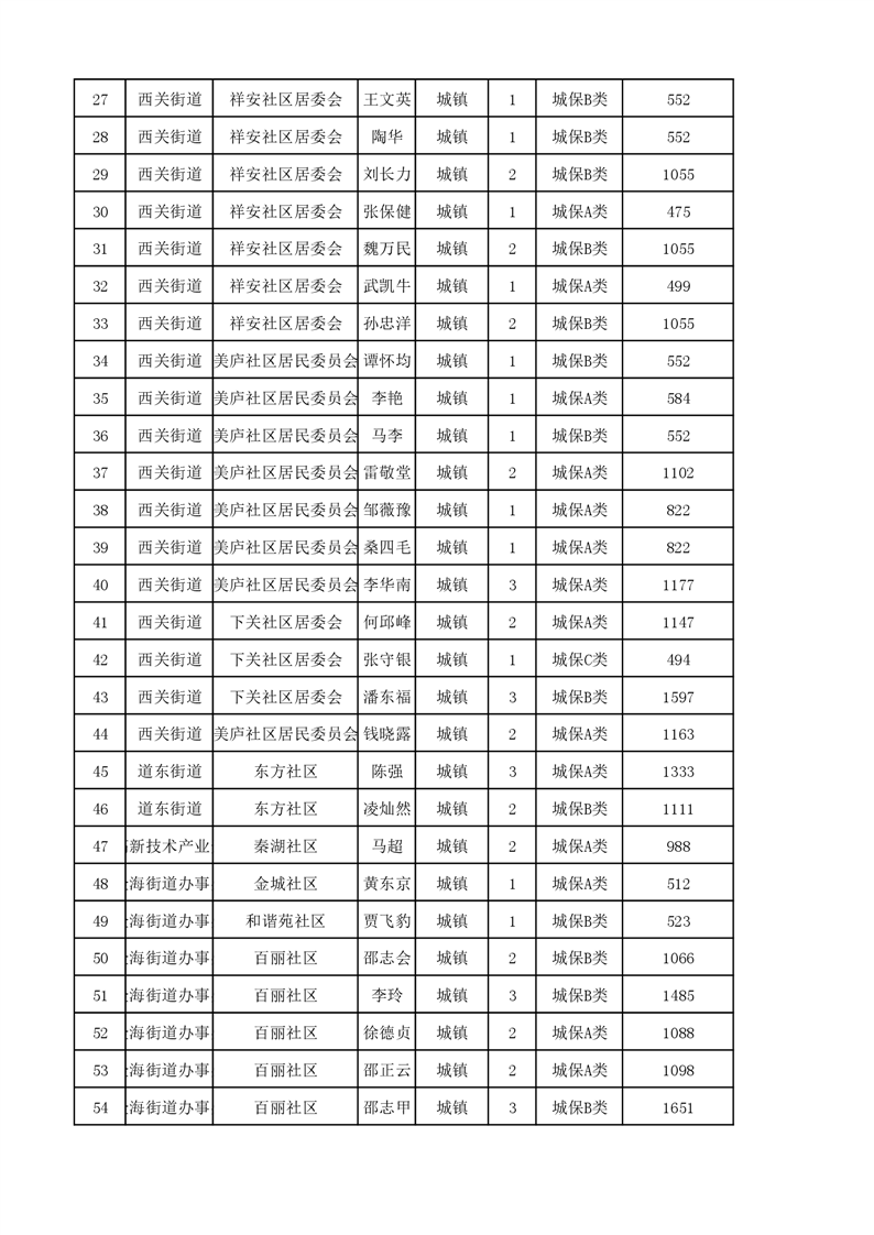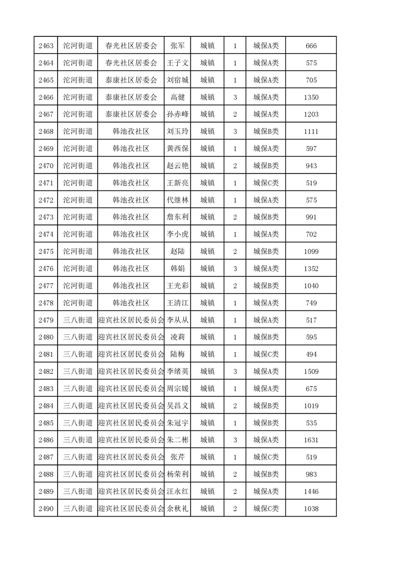 埇桥区2023年11月份城镇低保花名册