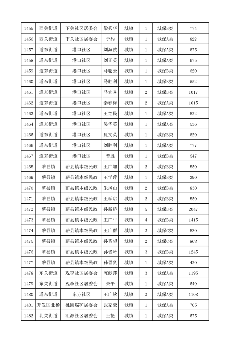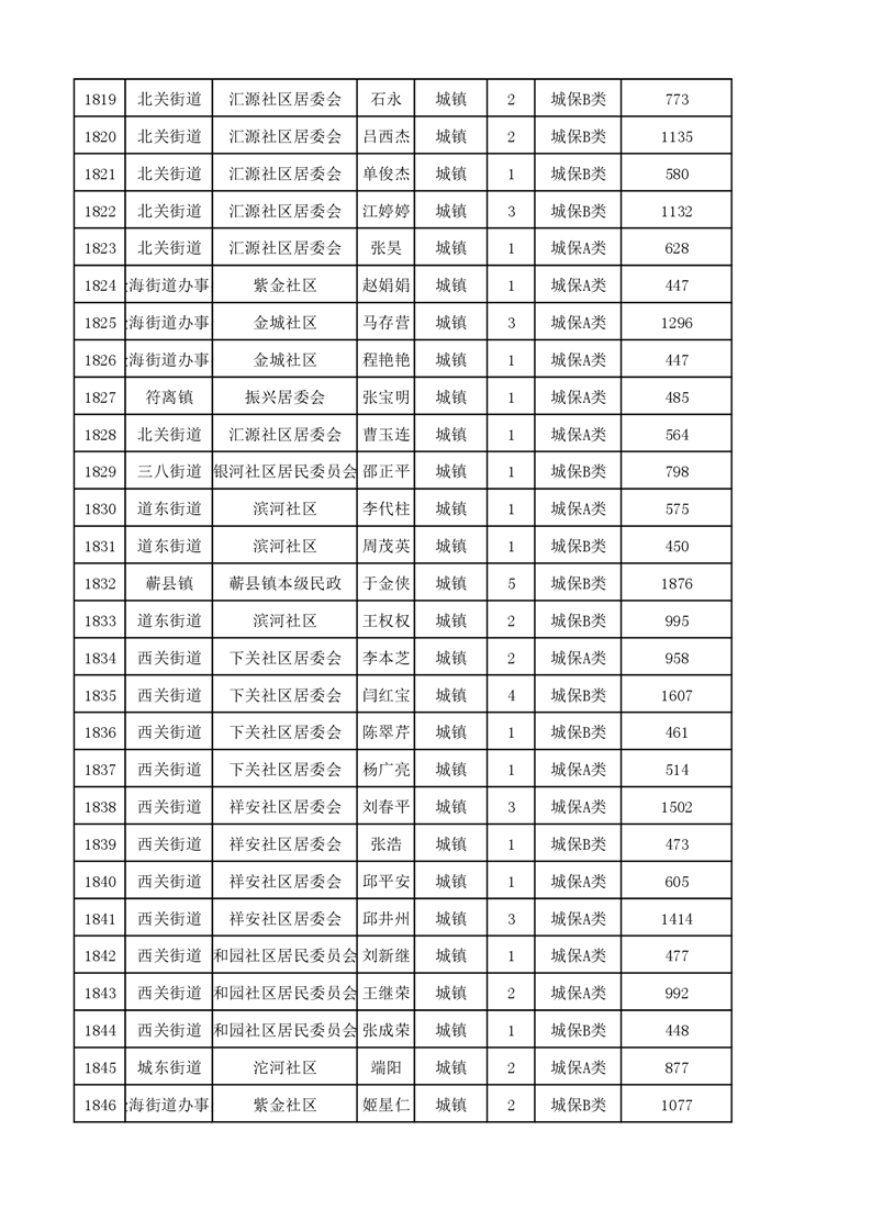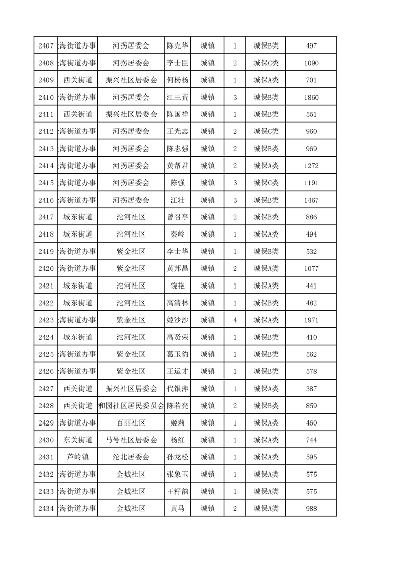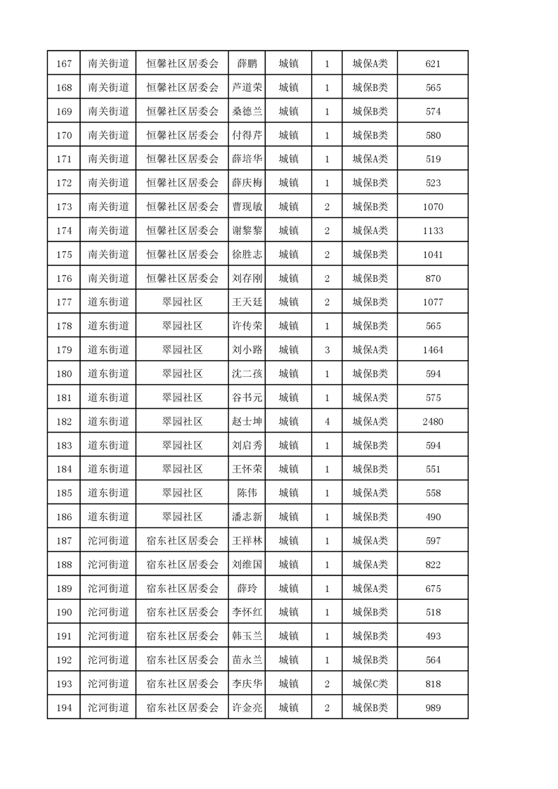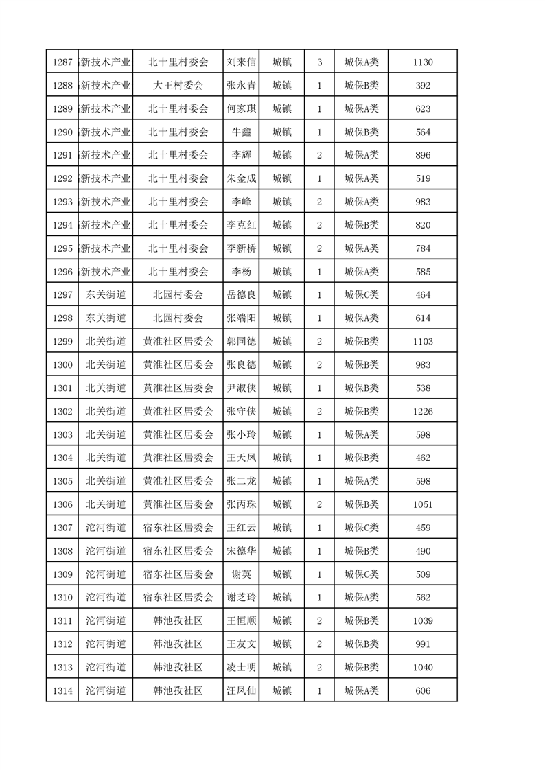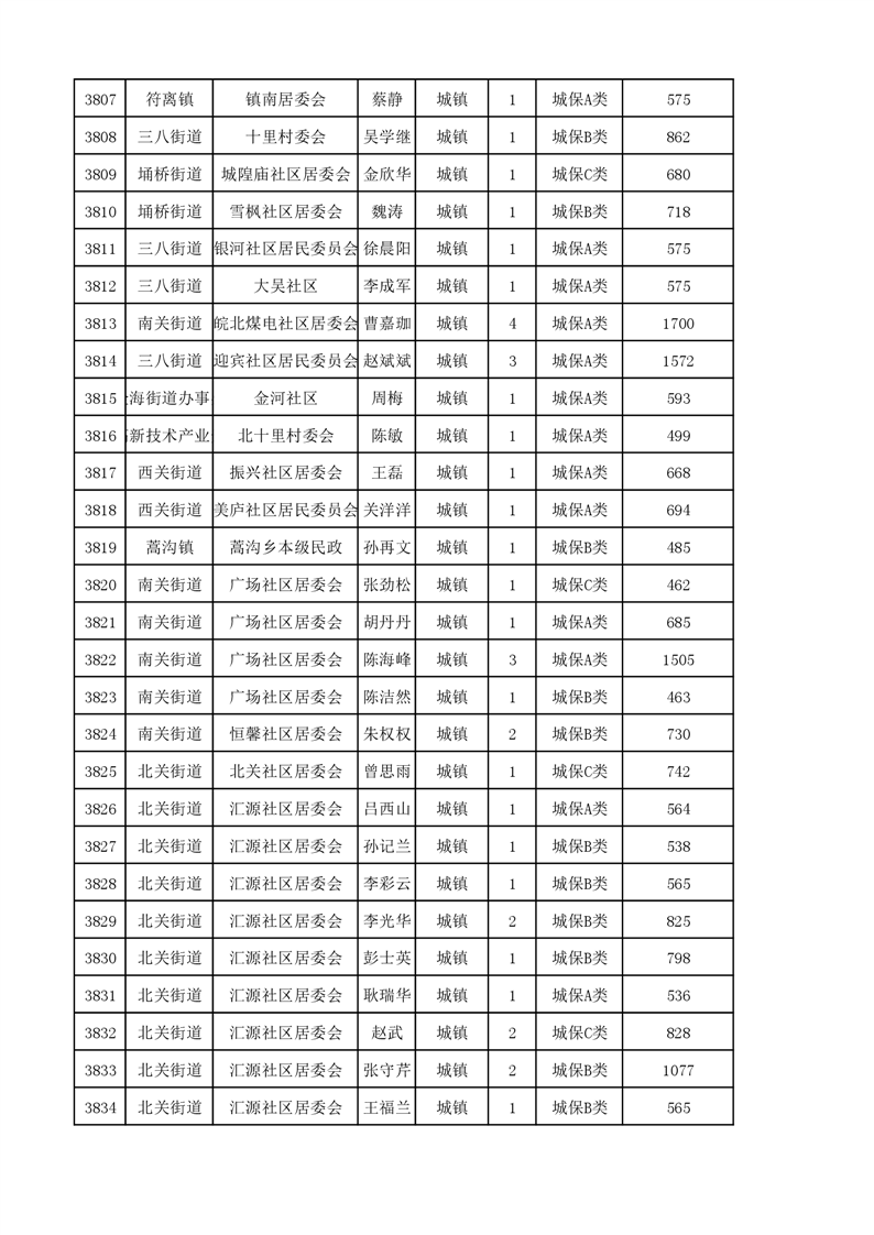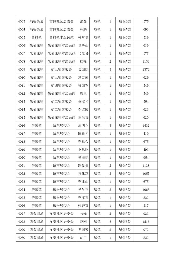 埇桥区2023年11月份城镇低保花名册