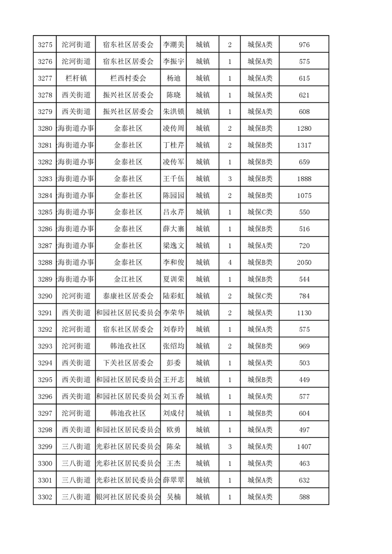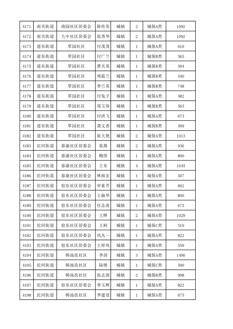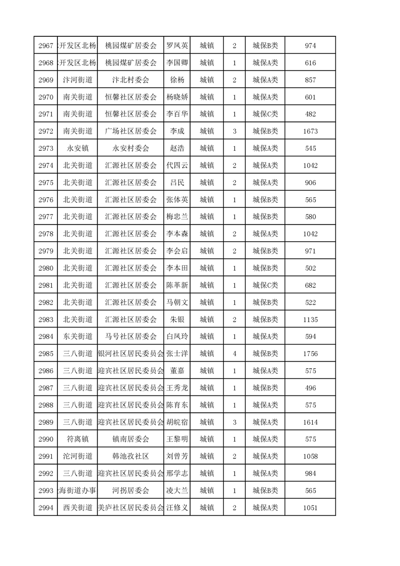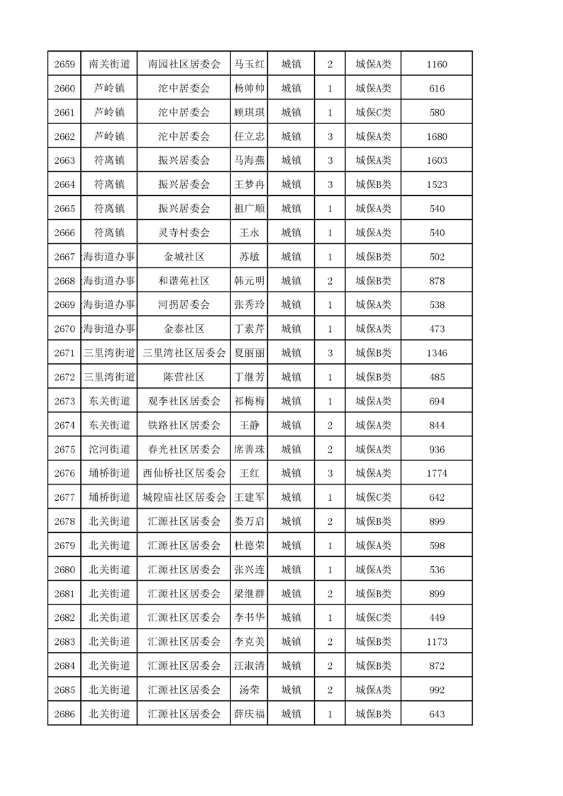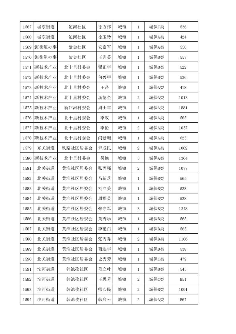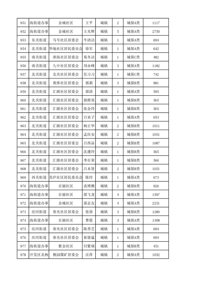 埇桥区2023年11月份城镇低保花名册
