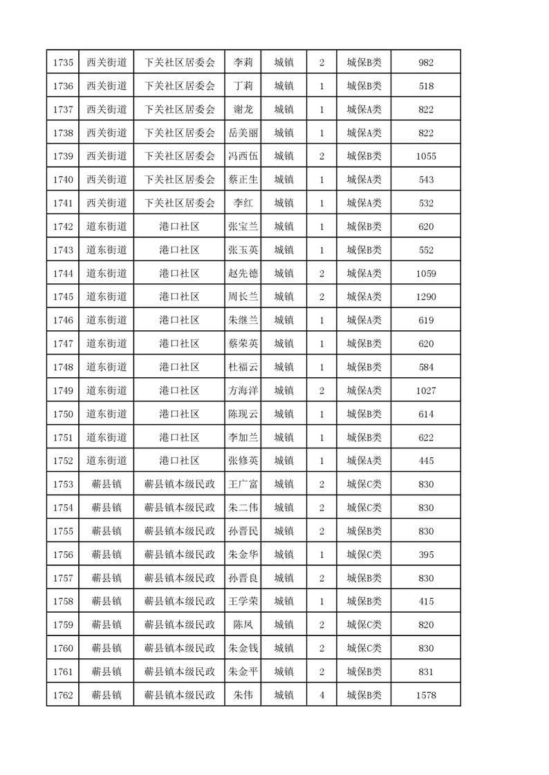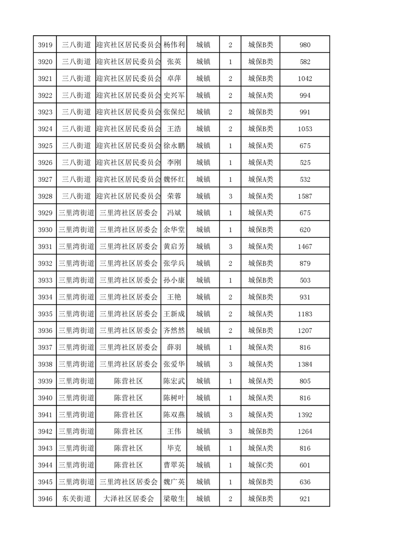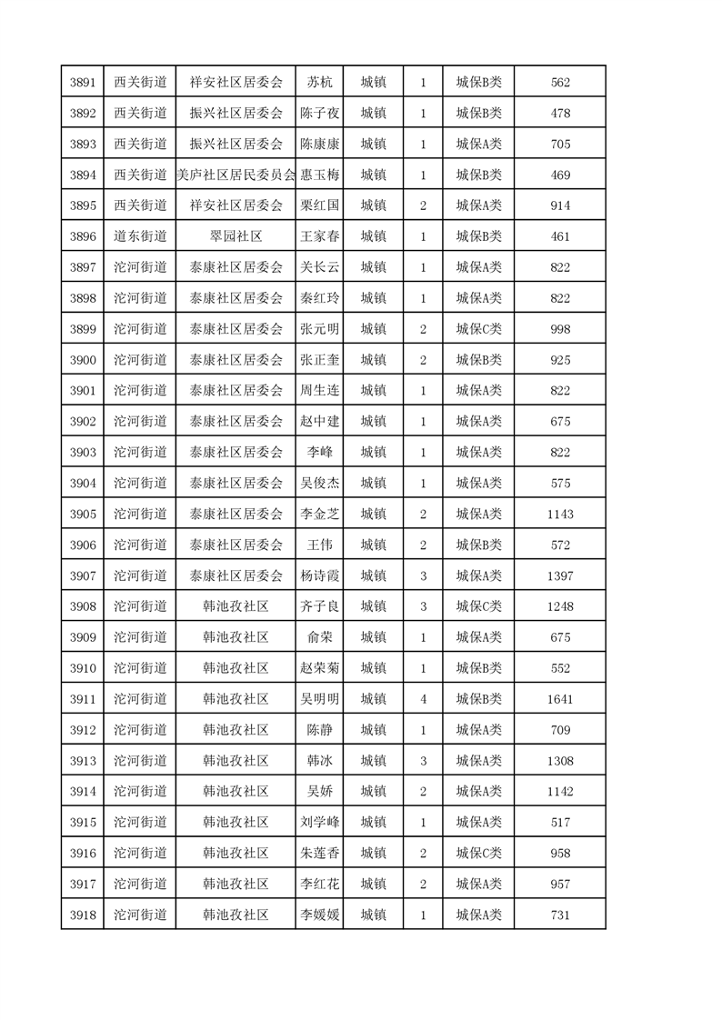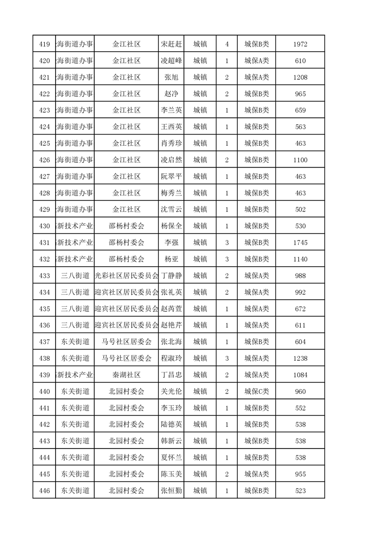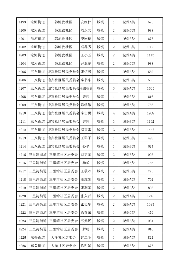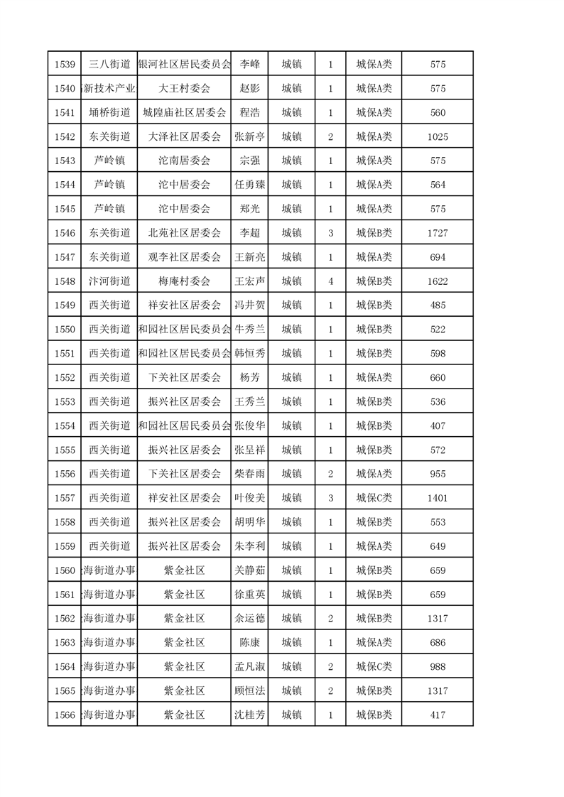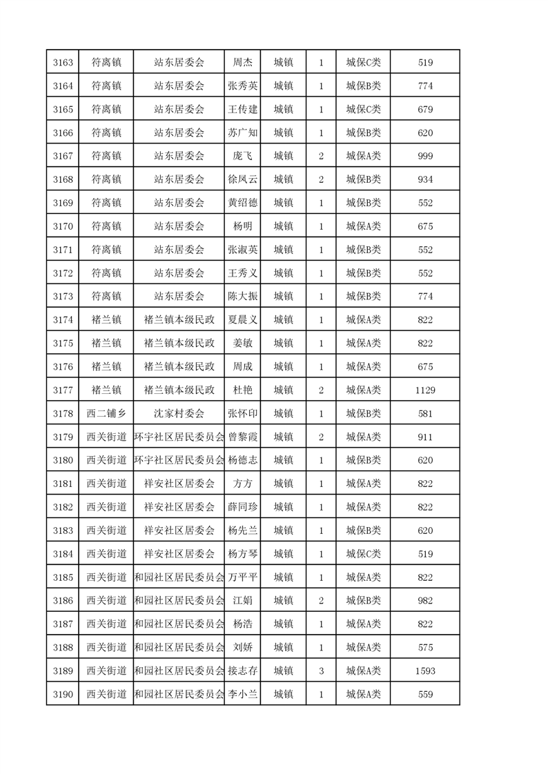 埇桥区2023年11月份城镇低保花名册