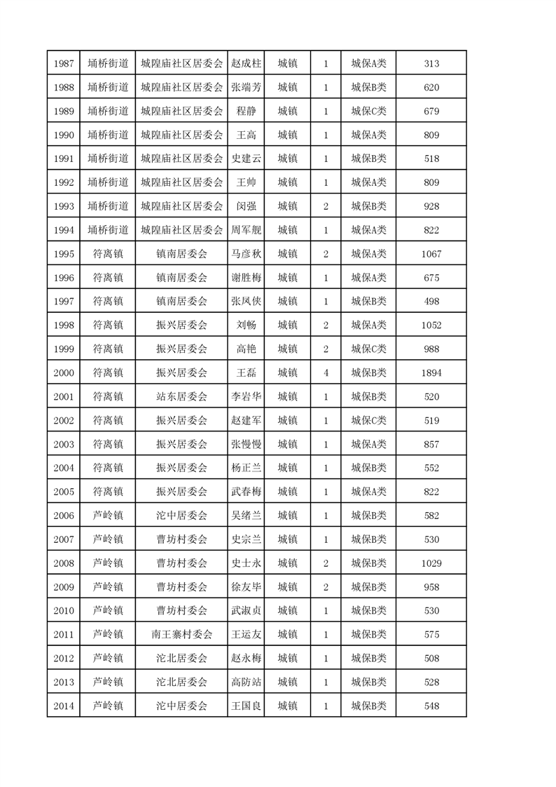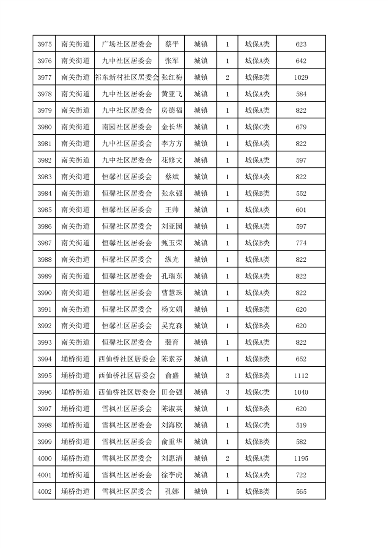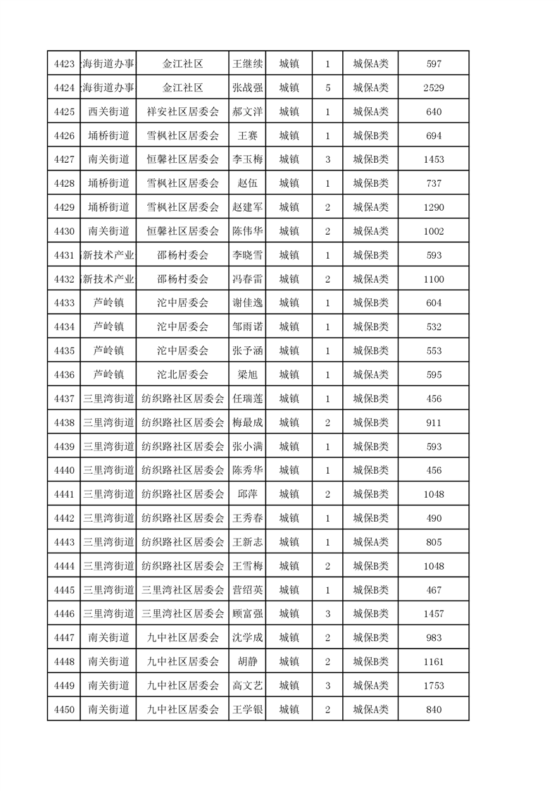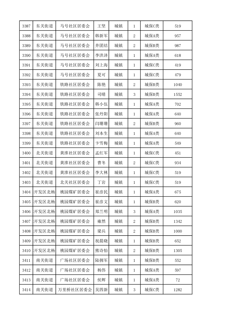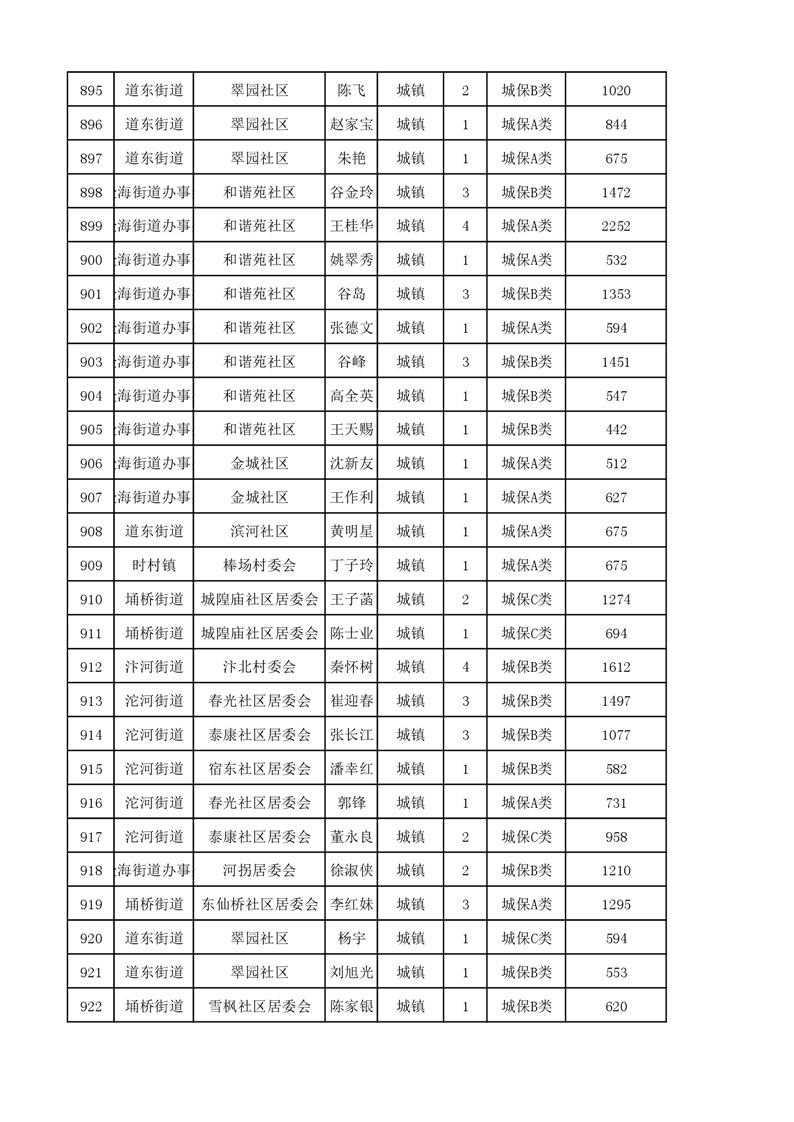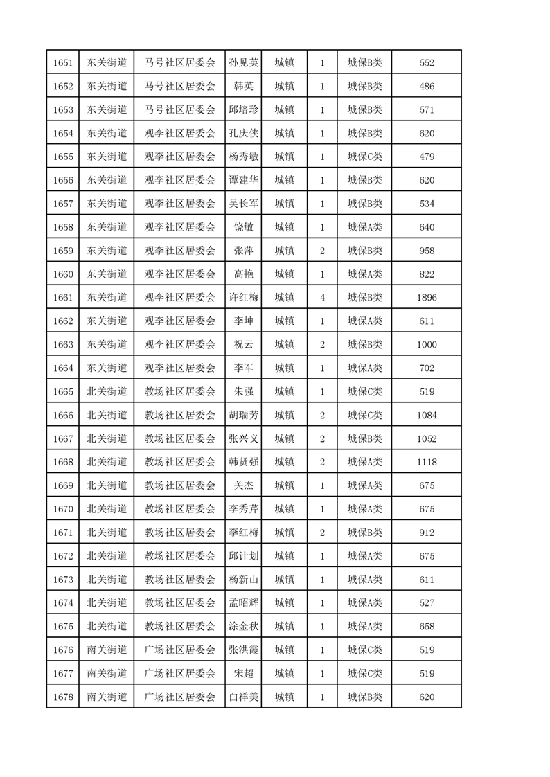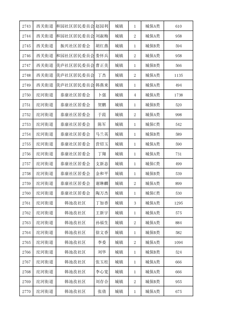 埇桥区2023年11月份城镇低保花名册
