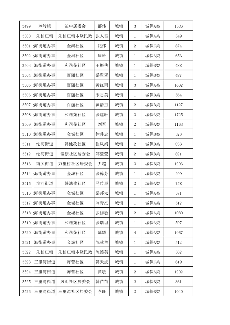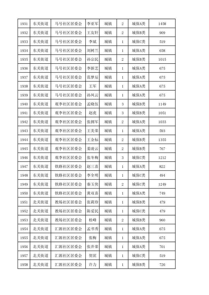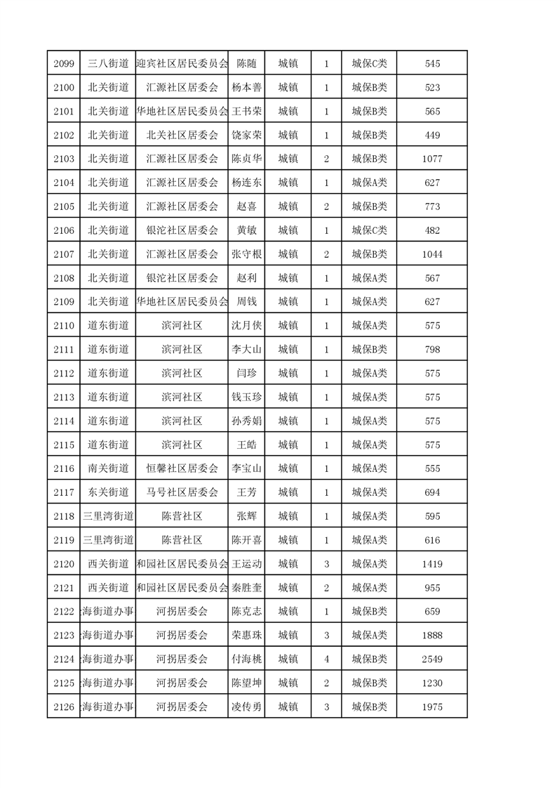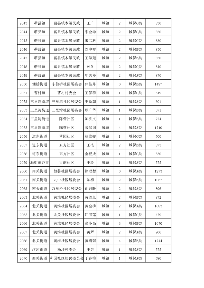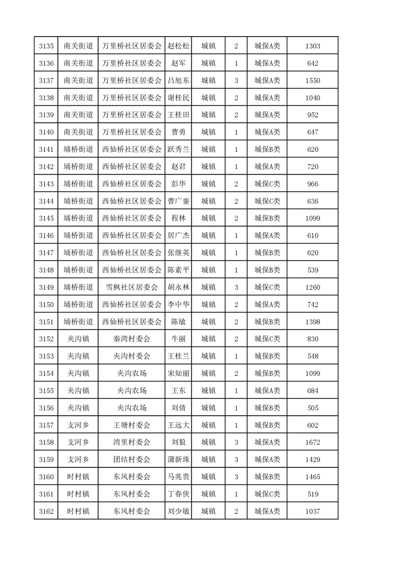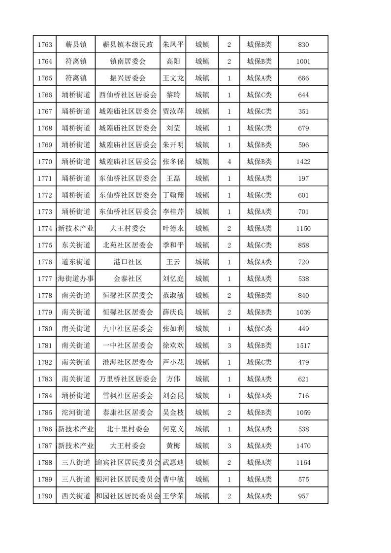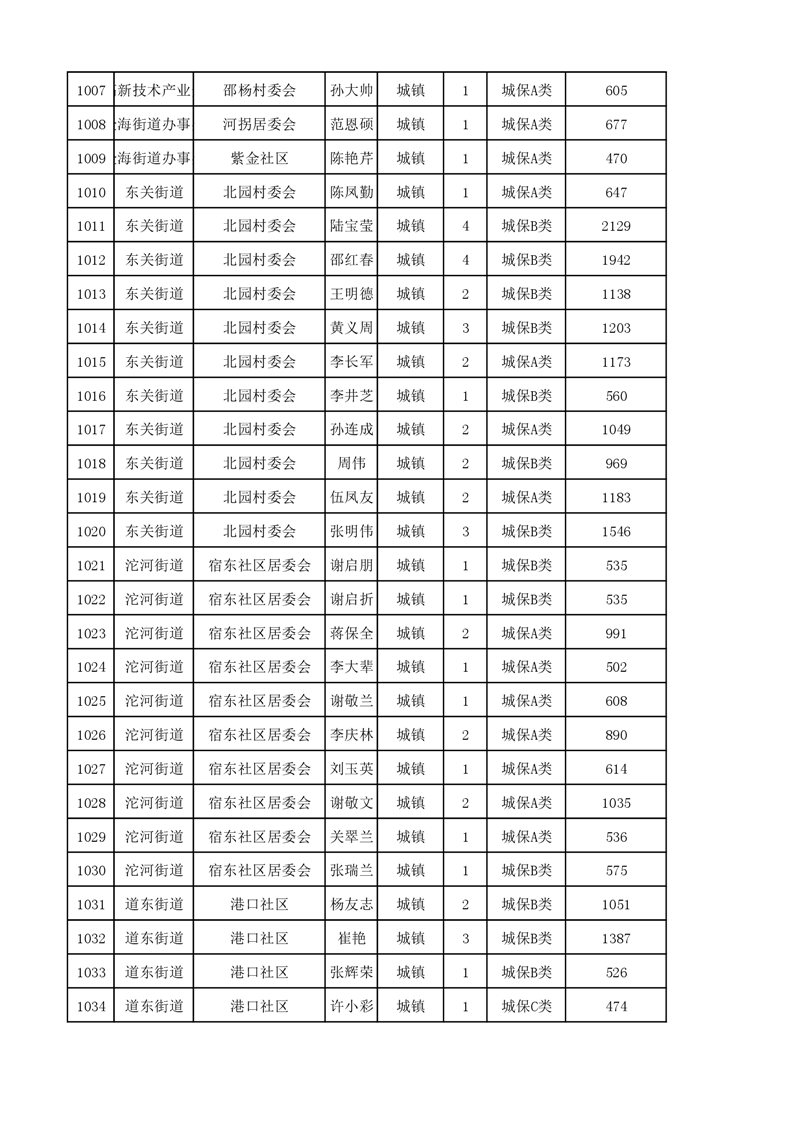 埇桥区2023年11月份城镇低保花名册