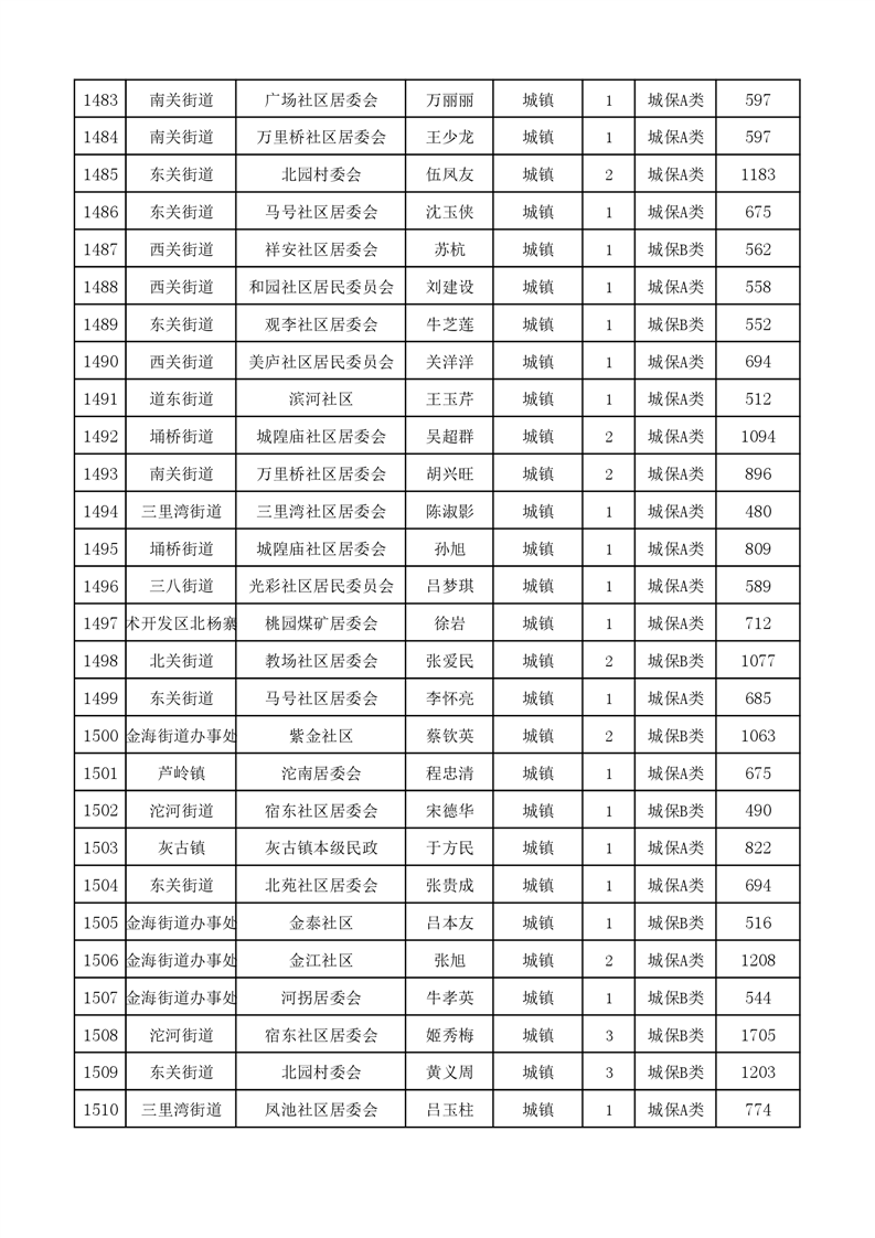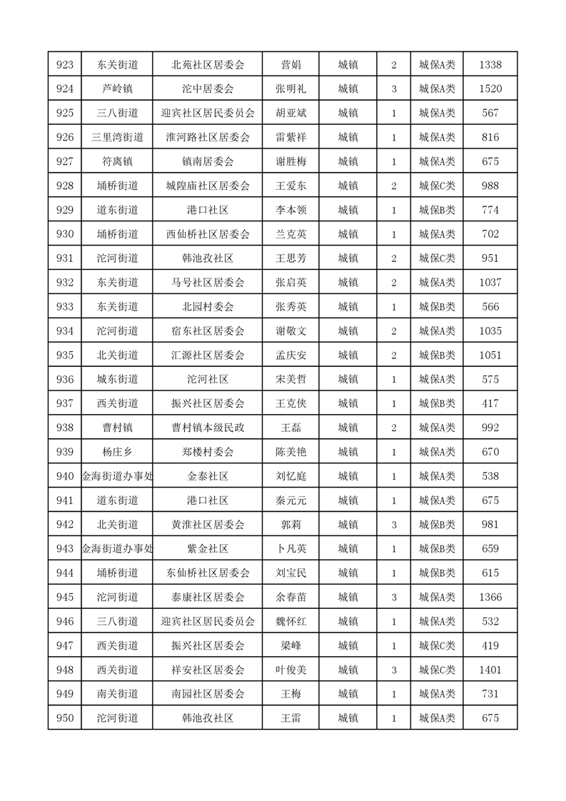 埇桥区2024年1月份城镇低保花名册