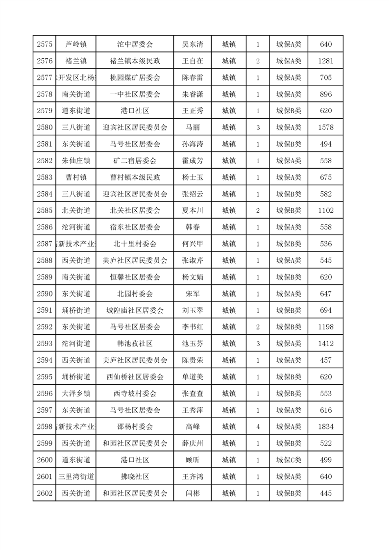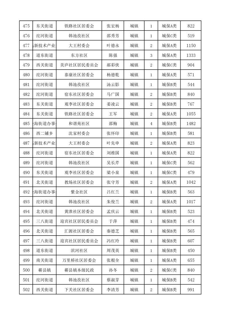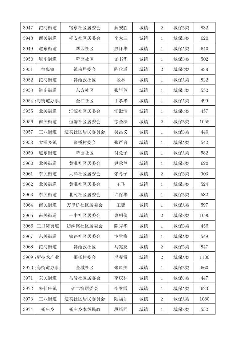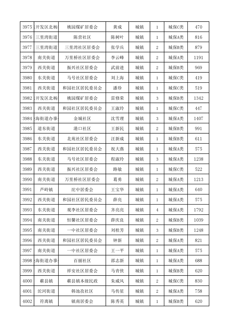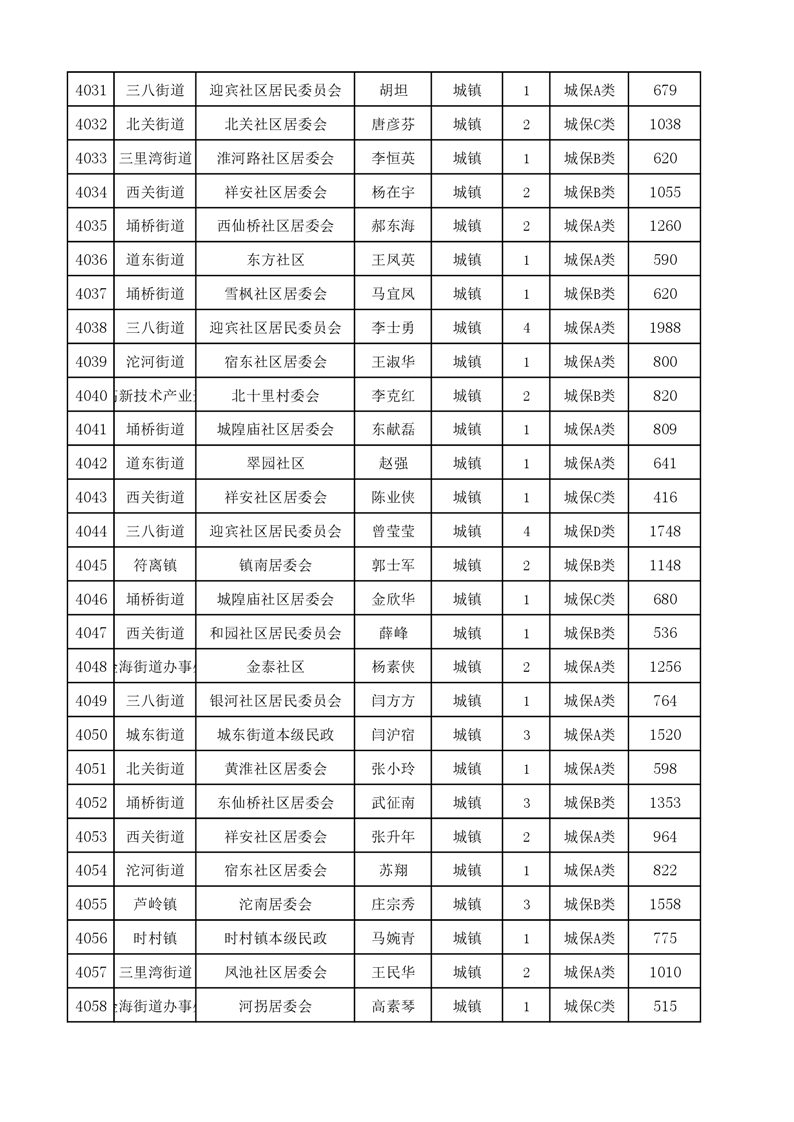 埇桥区2024年4月份城镇低保花名册