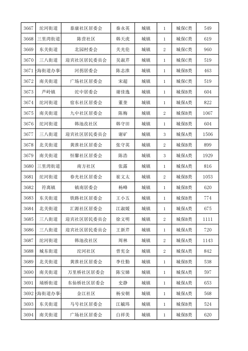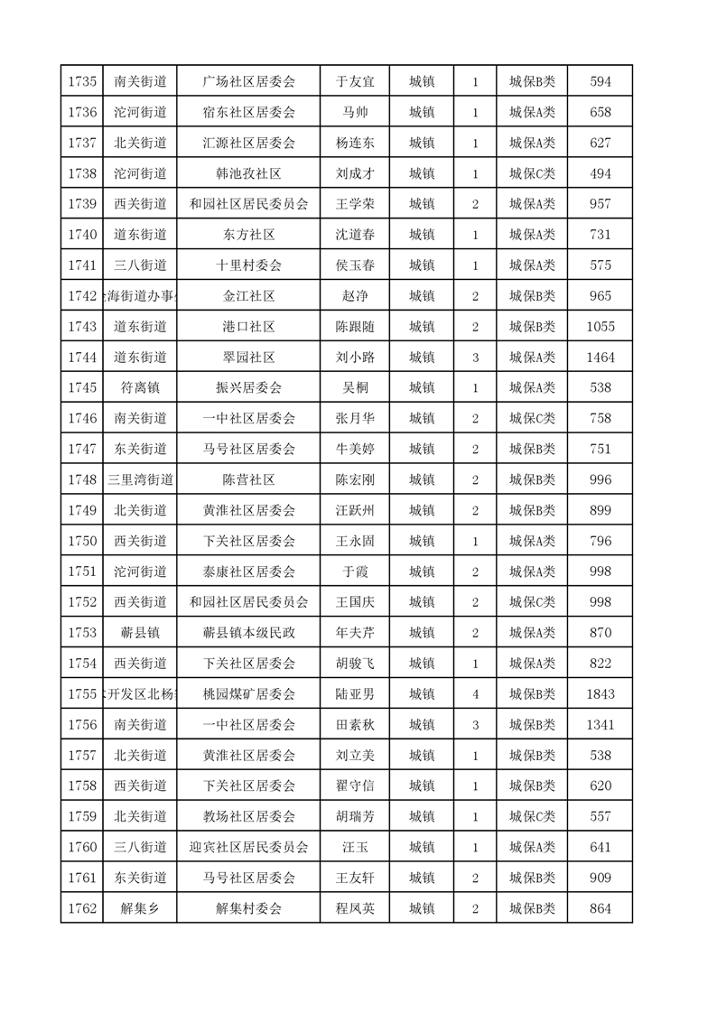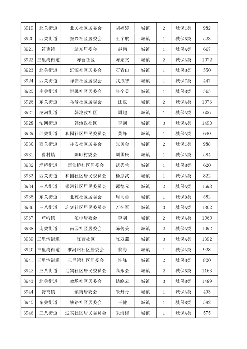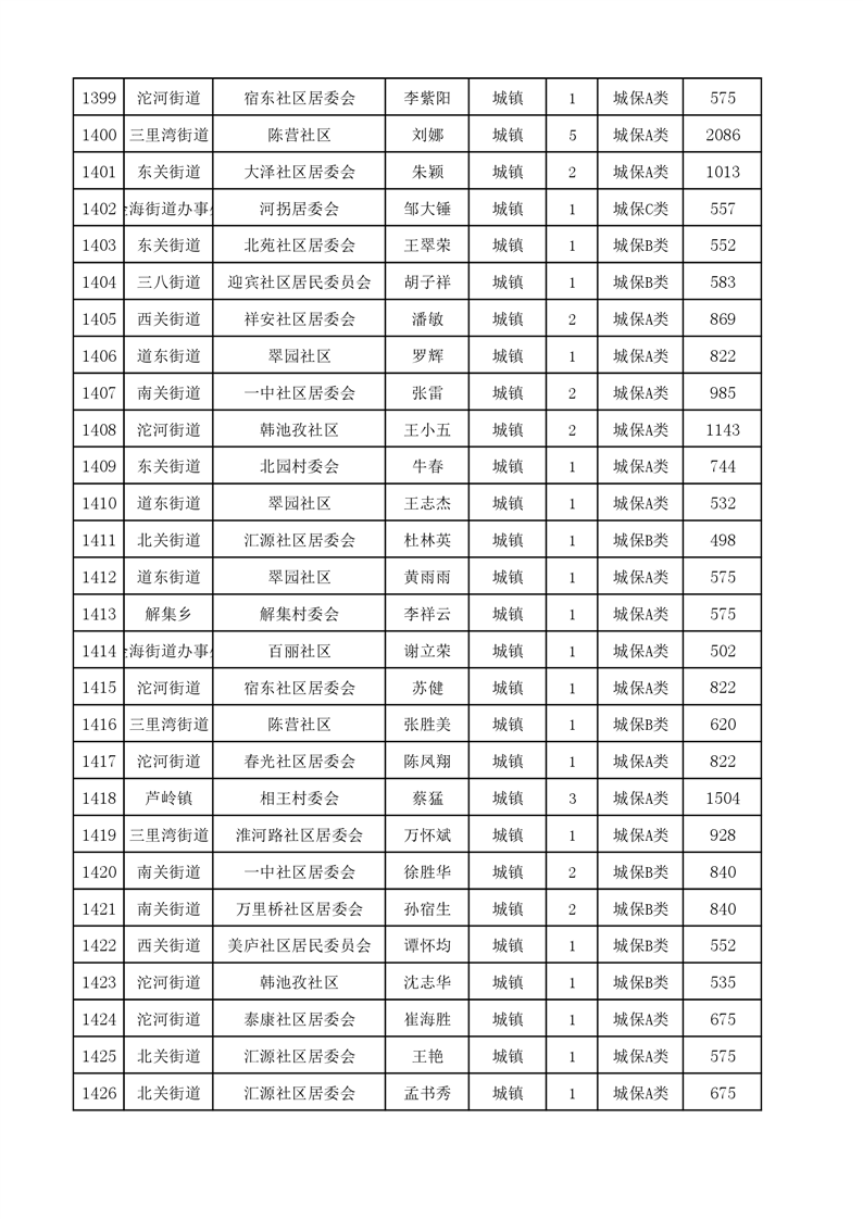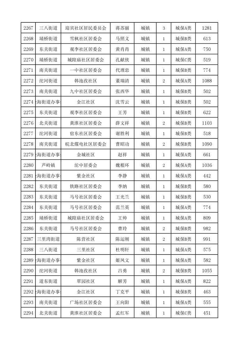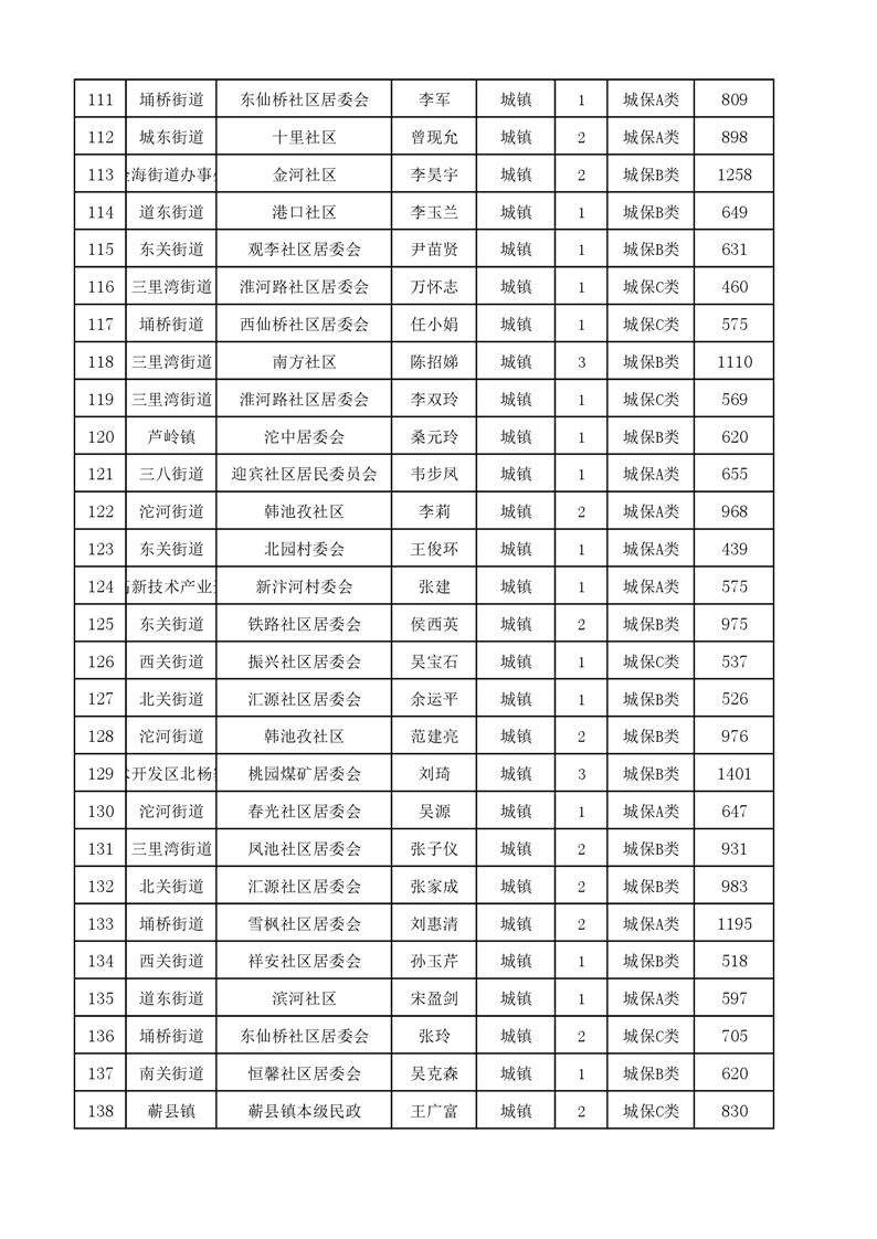 埇桥区2024年4月份城镇低保花名册