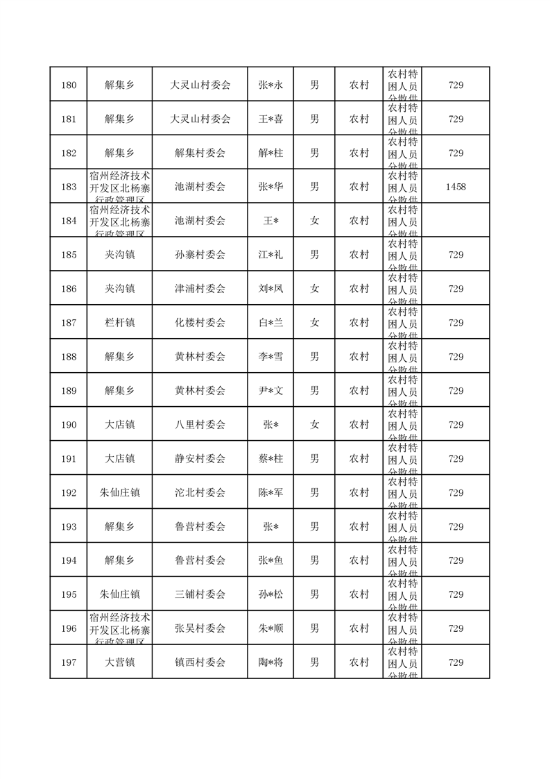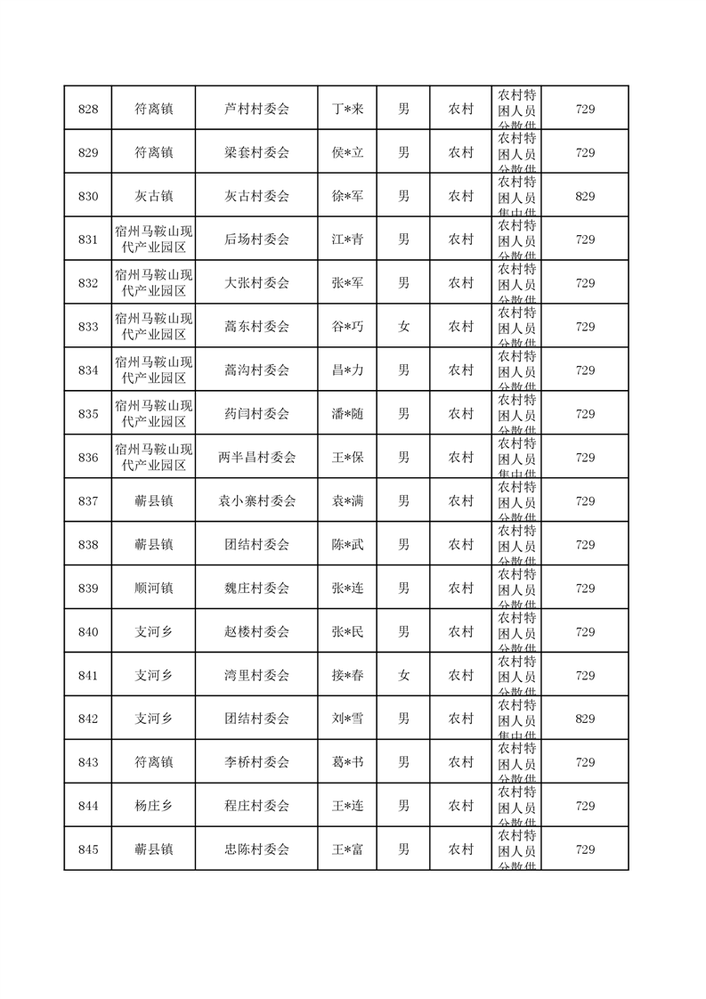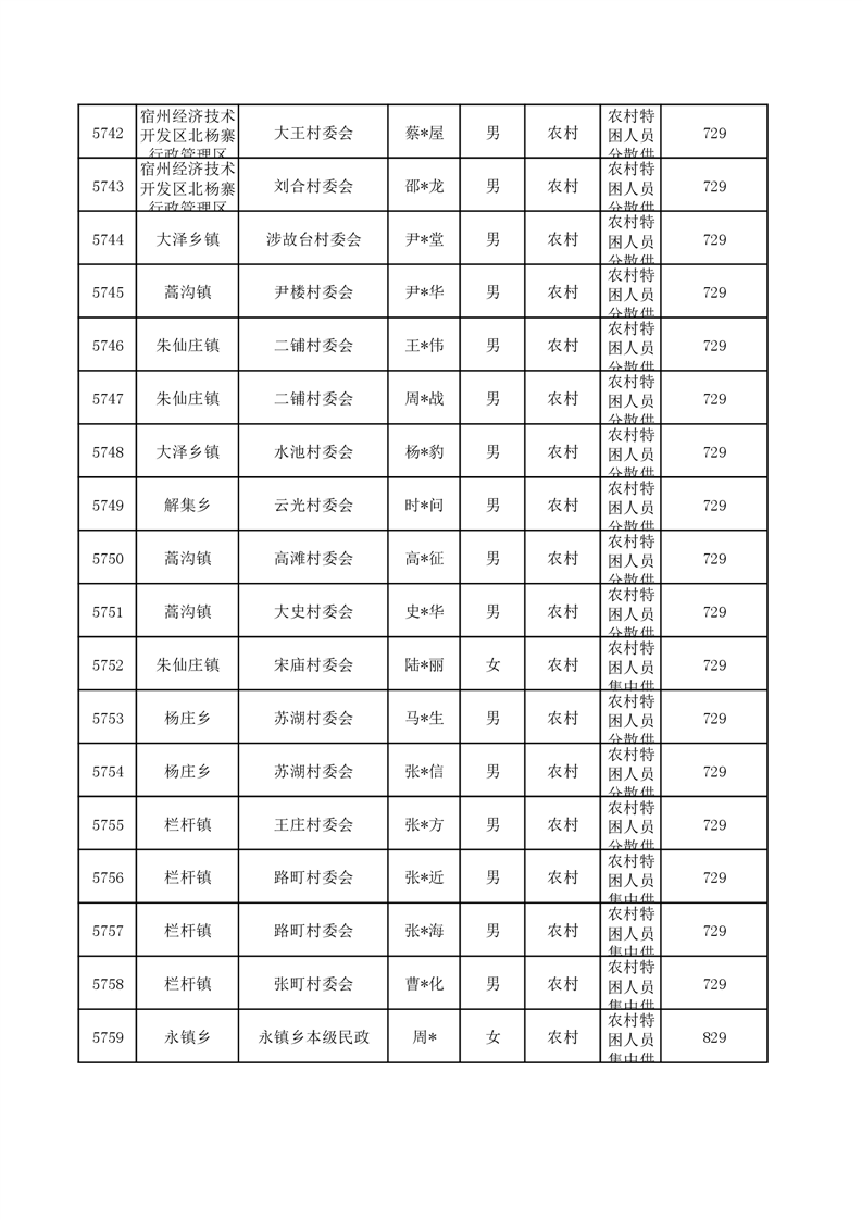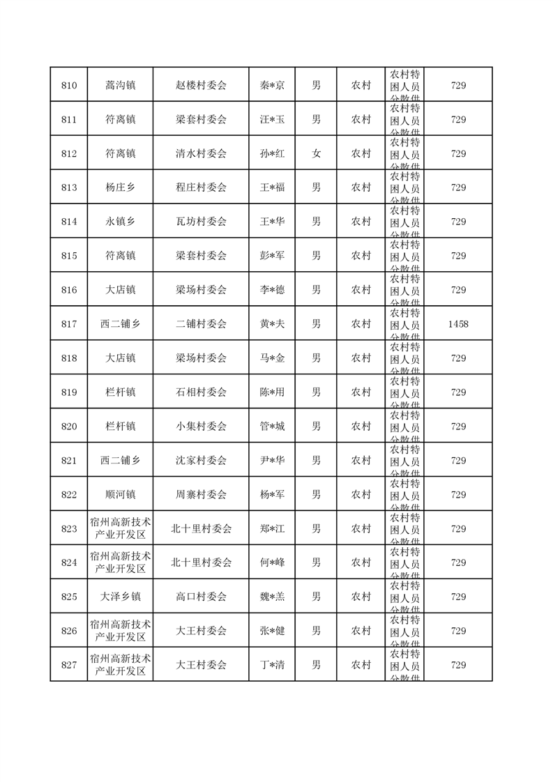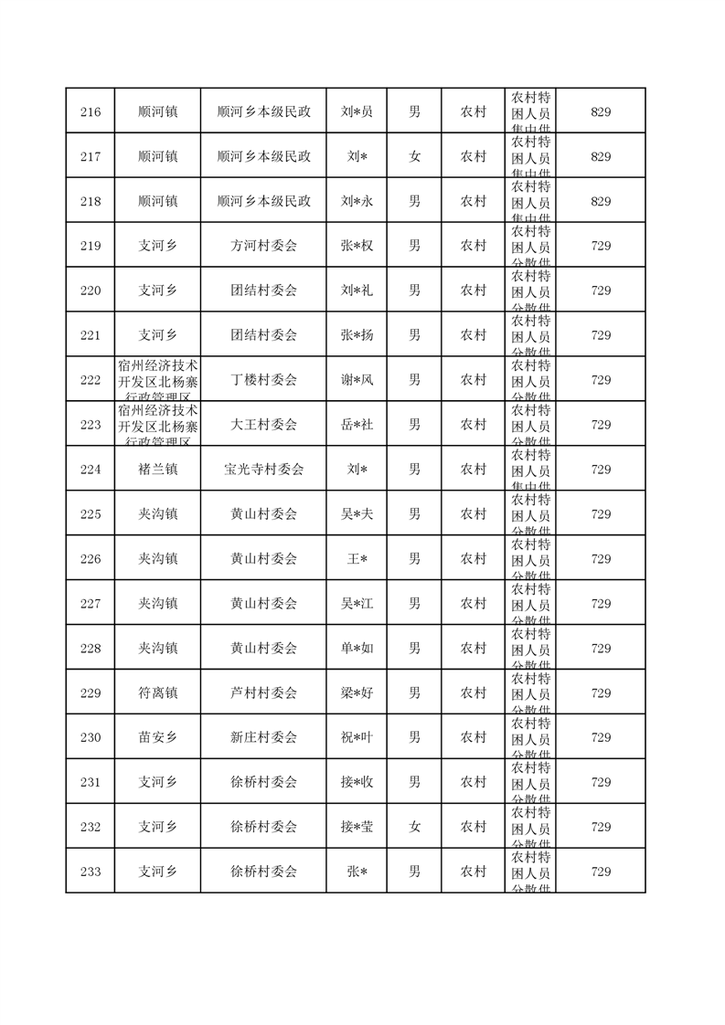 埇桥区2024年6月特困人员名单