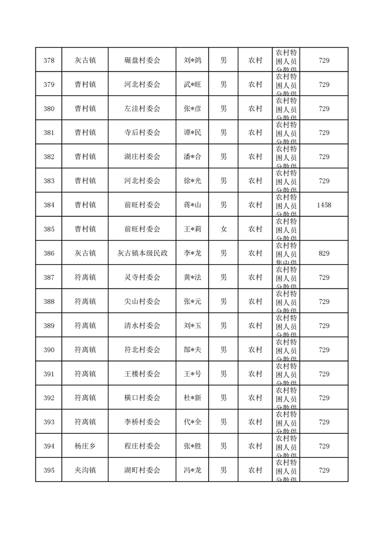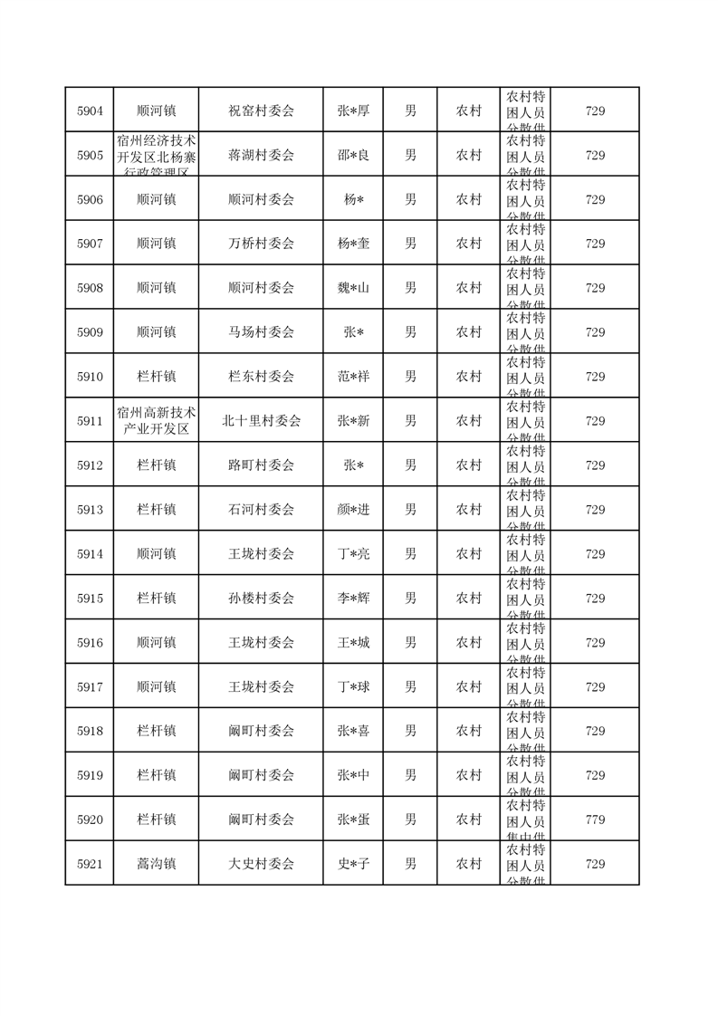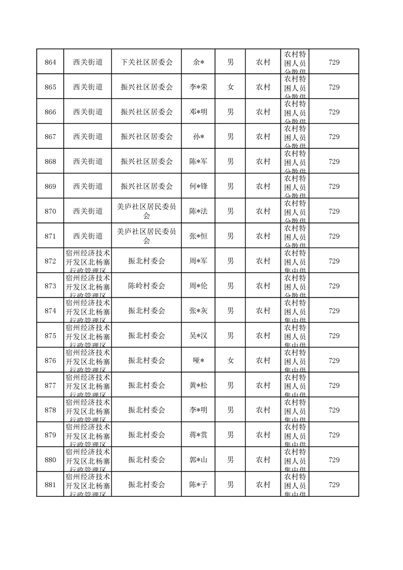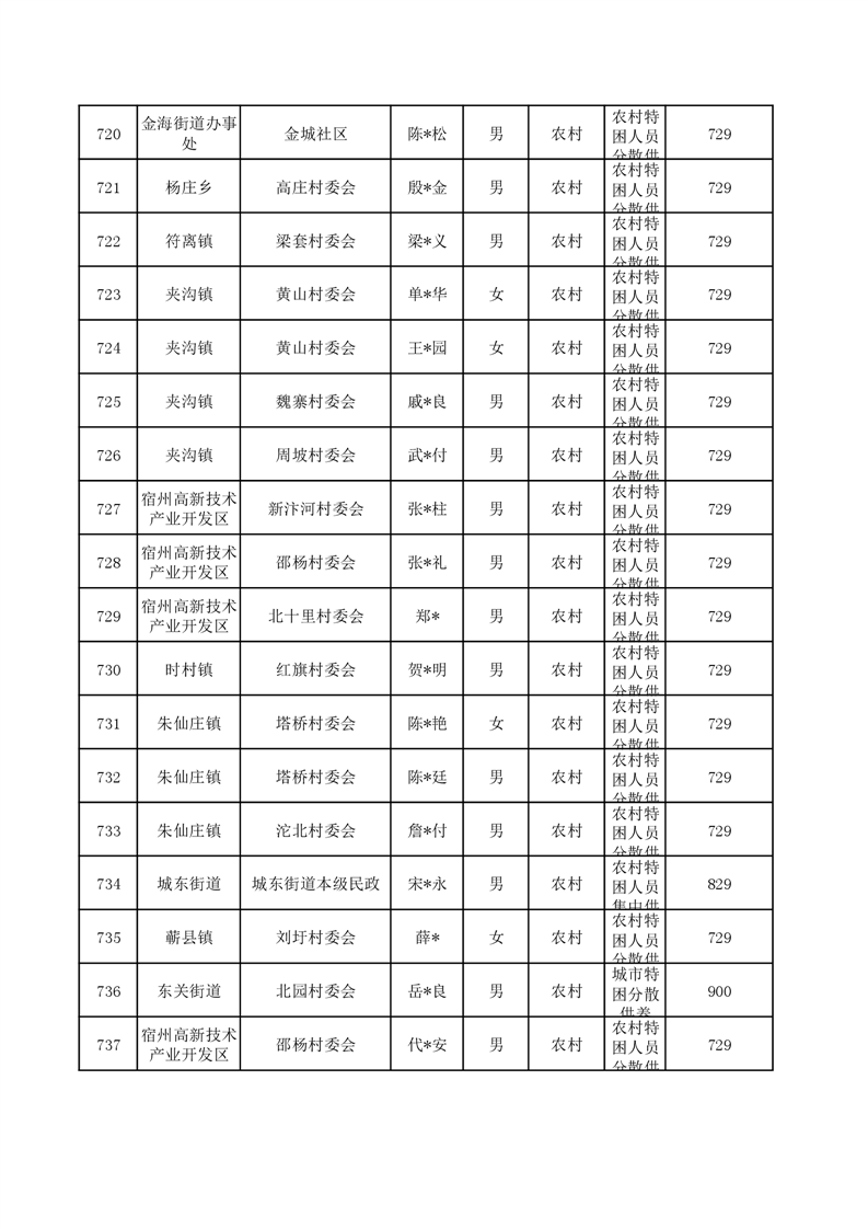 埇桥区2024年6月特困人员名单