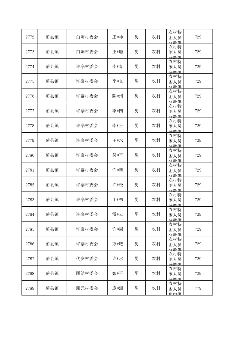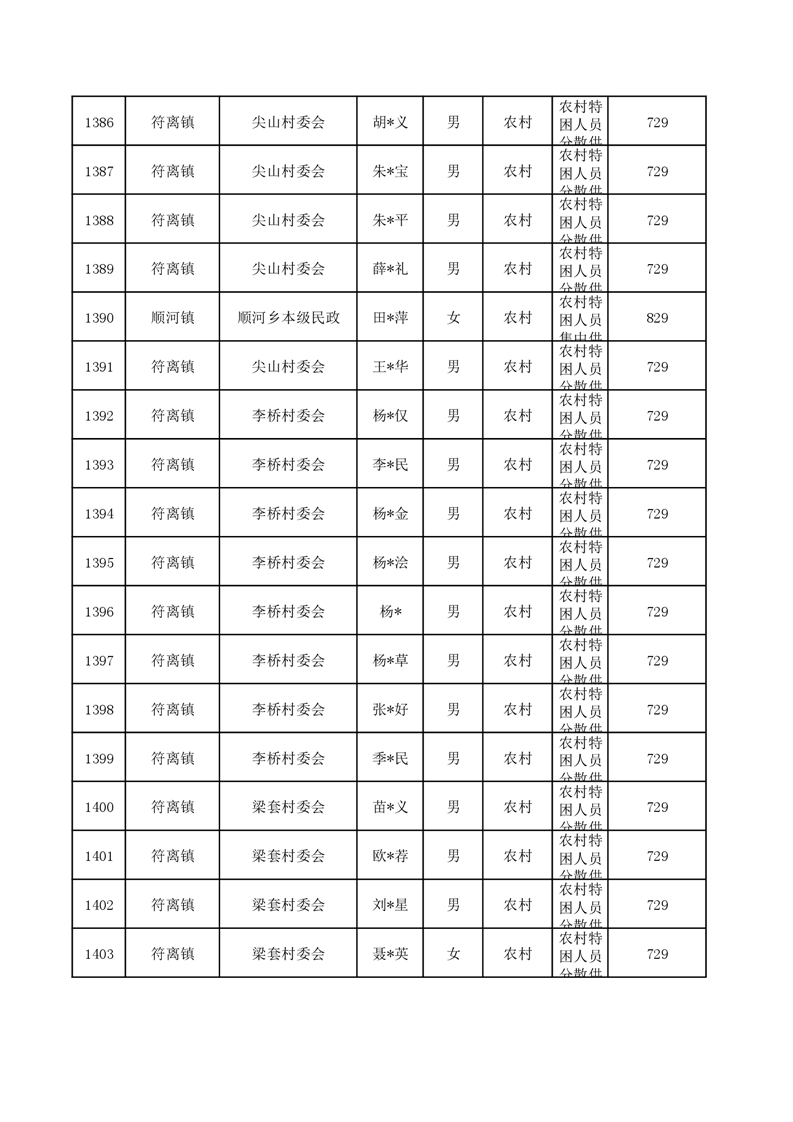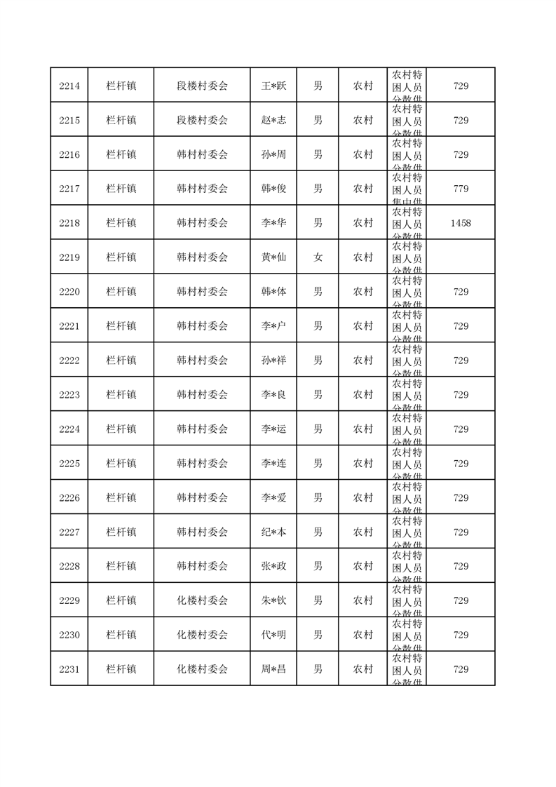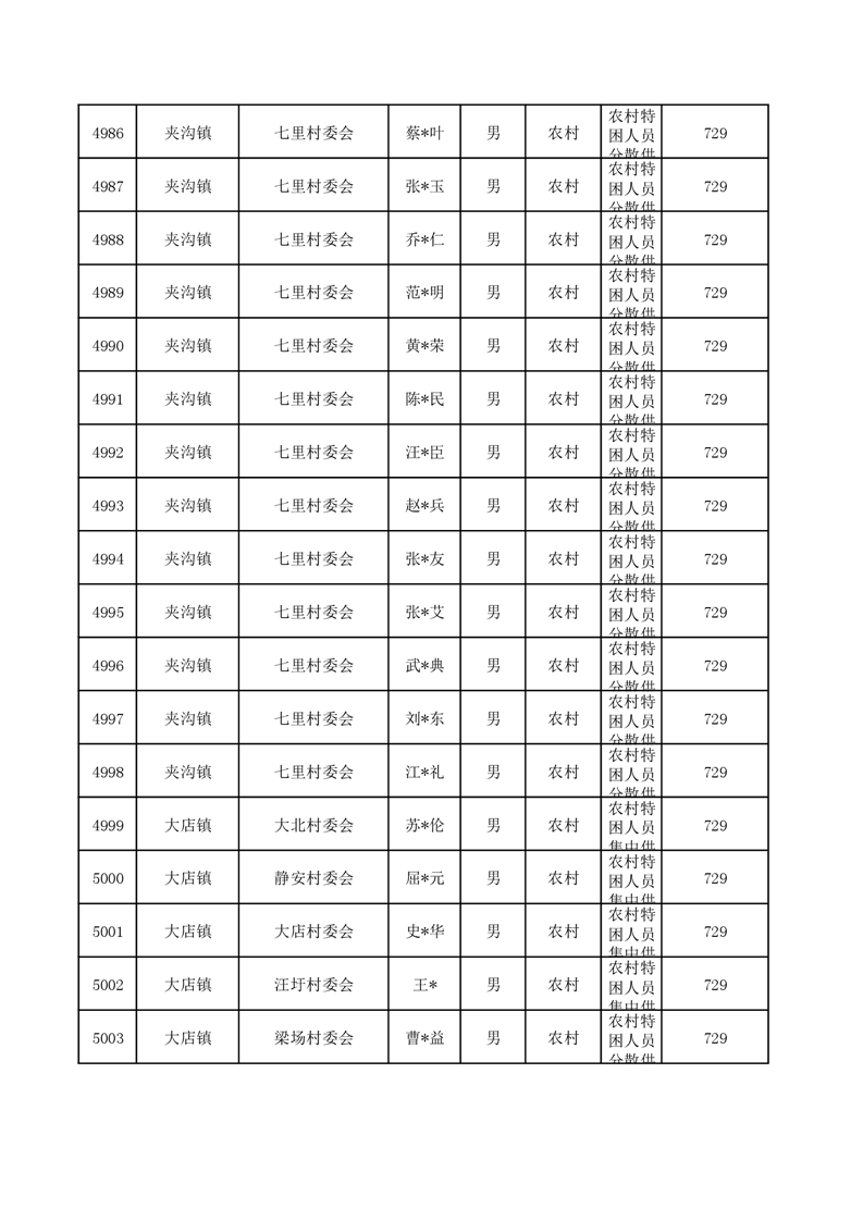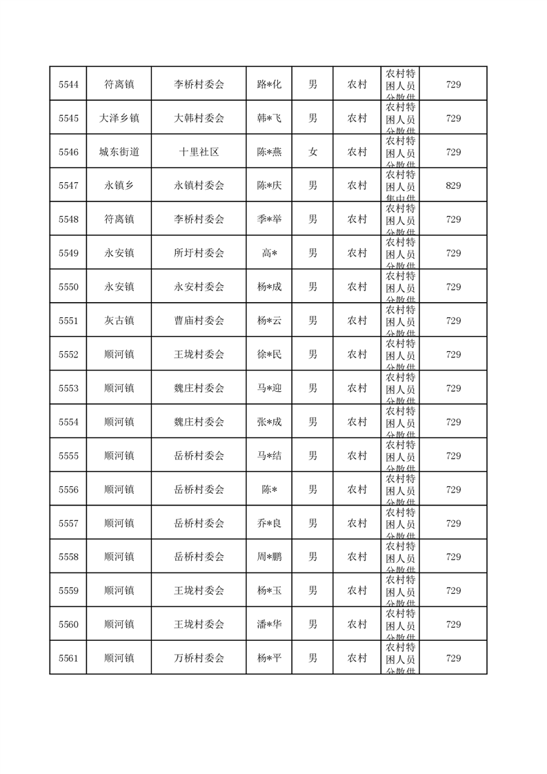 埇桥区2024年6月特困人员名单