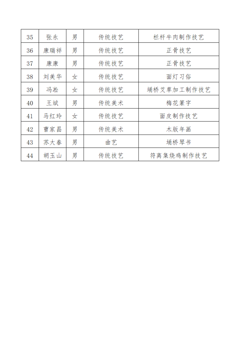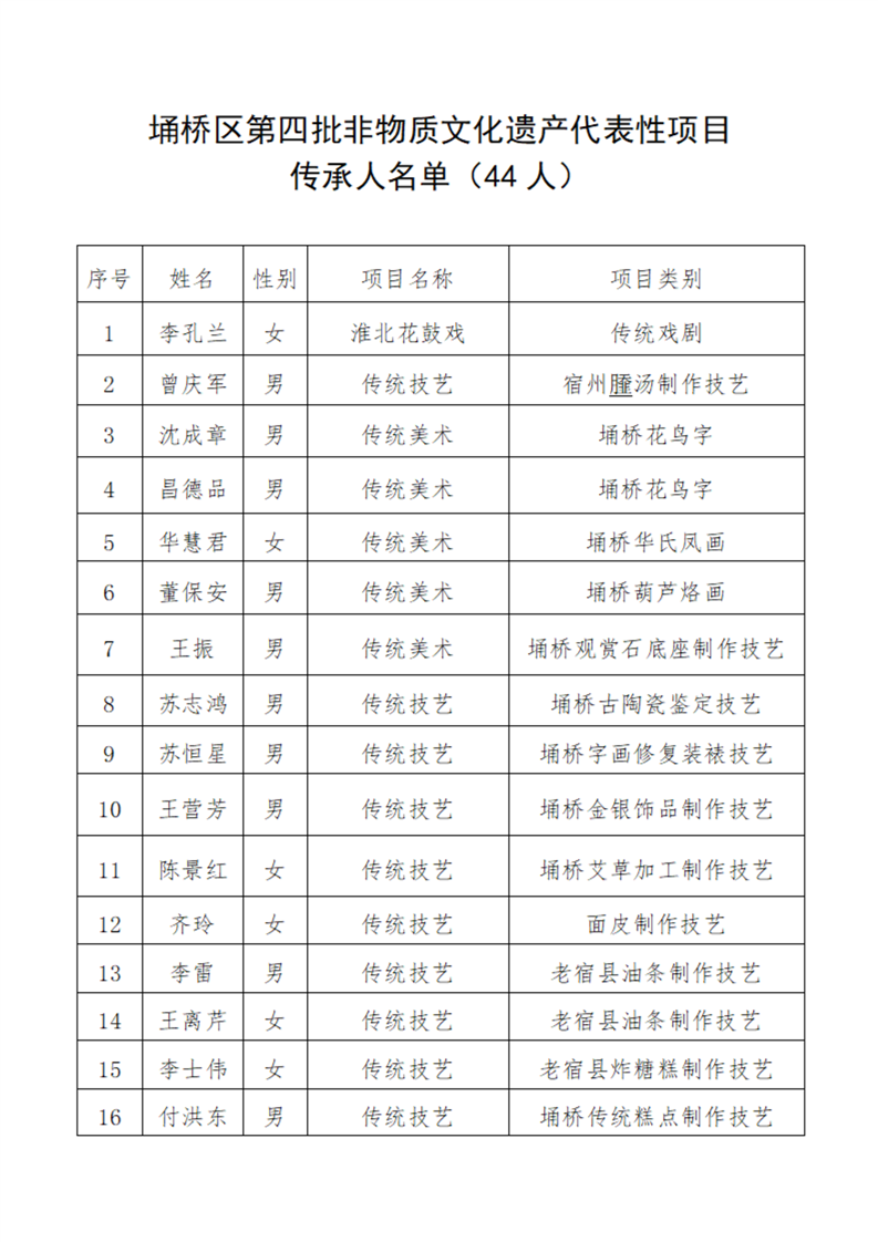 关于公布埇桥区第四批区级非物质文化遗产代表性项目传承人名单的通知