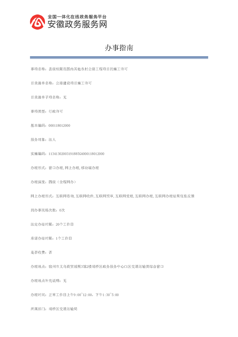 农村公路工程项目施工许可办事指南
