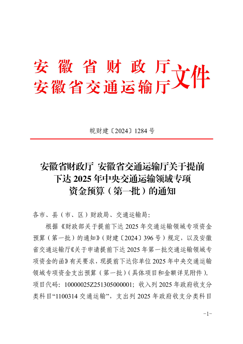 | 名称: | 【财政专项资金制度文件】安徽省财政厅安徽省交通运输厅关于提前下达中央交通运输领域专项资金预算 | ||