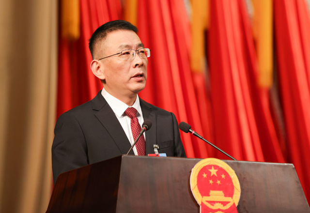 在热烈的掌声中,区委副书记、区长杨松涛代表区人民政府向大会作工作报告。